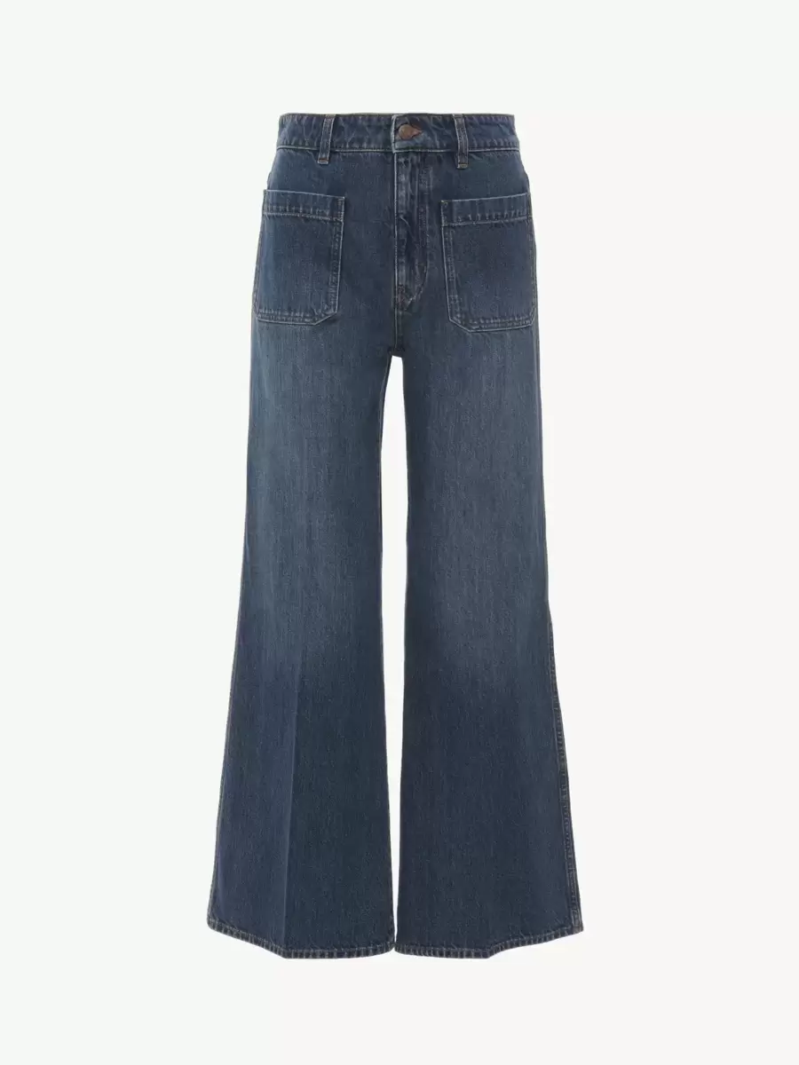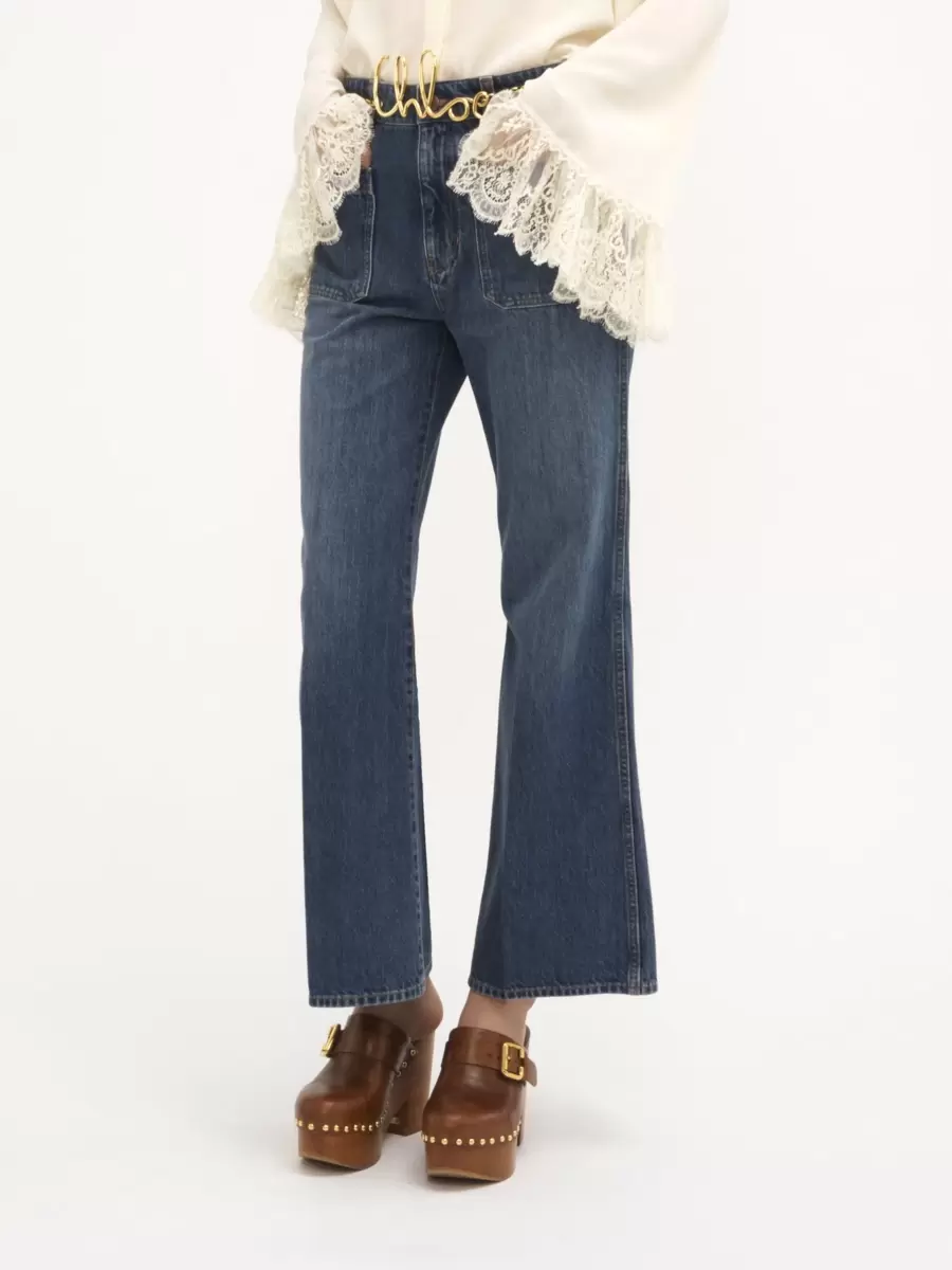 Croppade bootcut-jeans i vattenfri, blek denim i ekologisk bomull med påsydda framfickor.