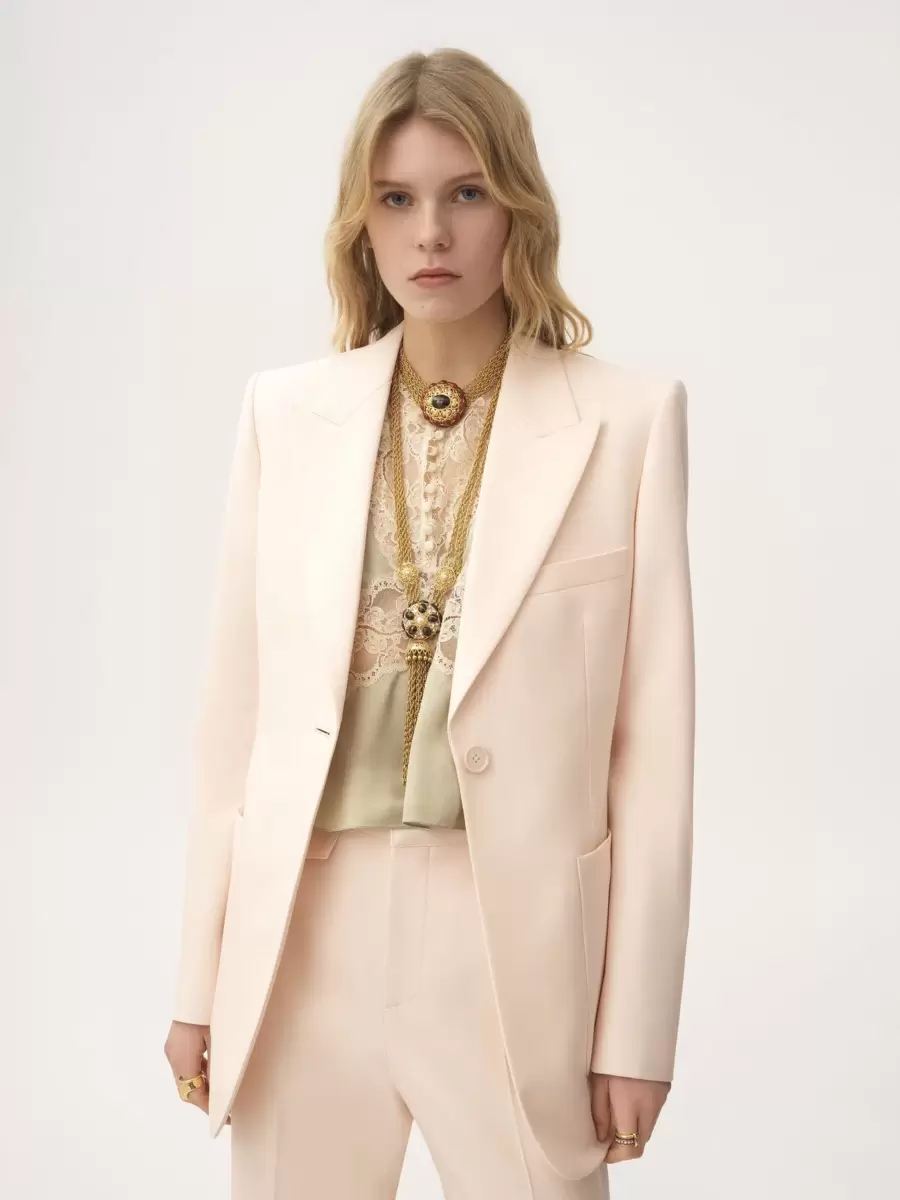 Enkelknäppt skräddarsydd jacka i ullgabardin