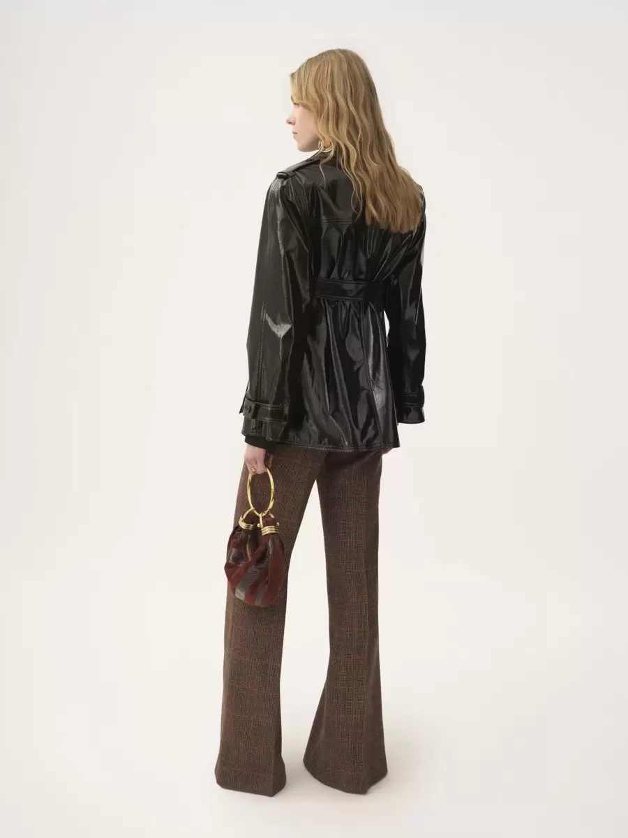 Kavaj med skärp i glänsande, belagd bomull, med maxifickor med lock, graverade hornknappar och guldfärgade detaljer.