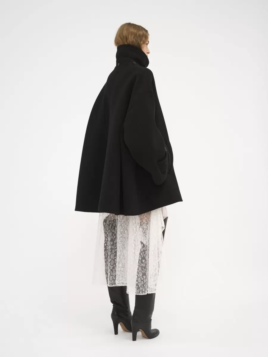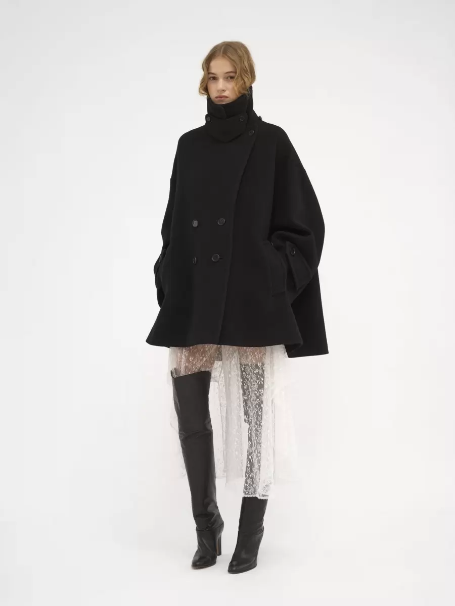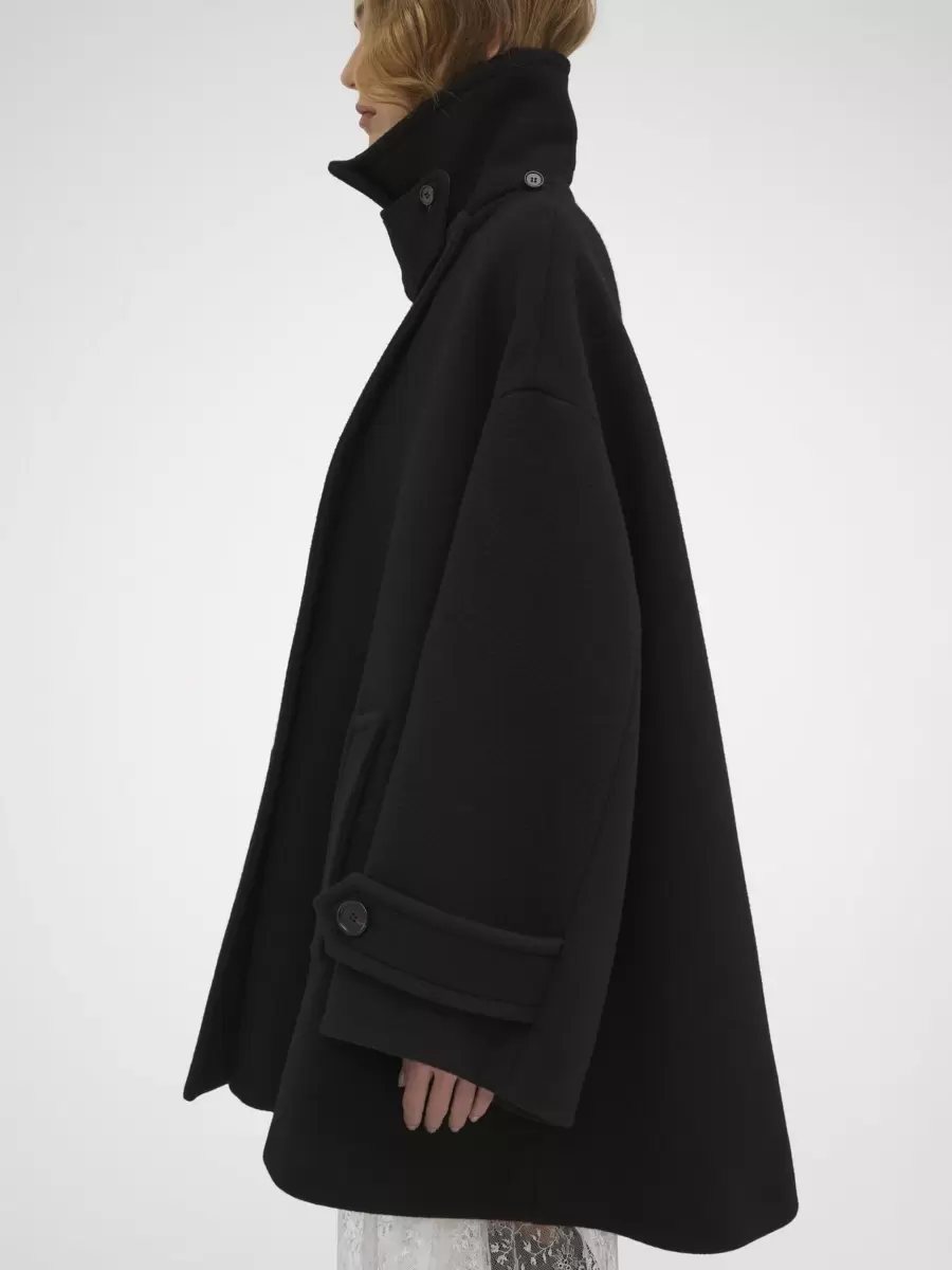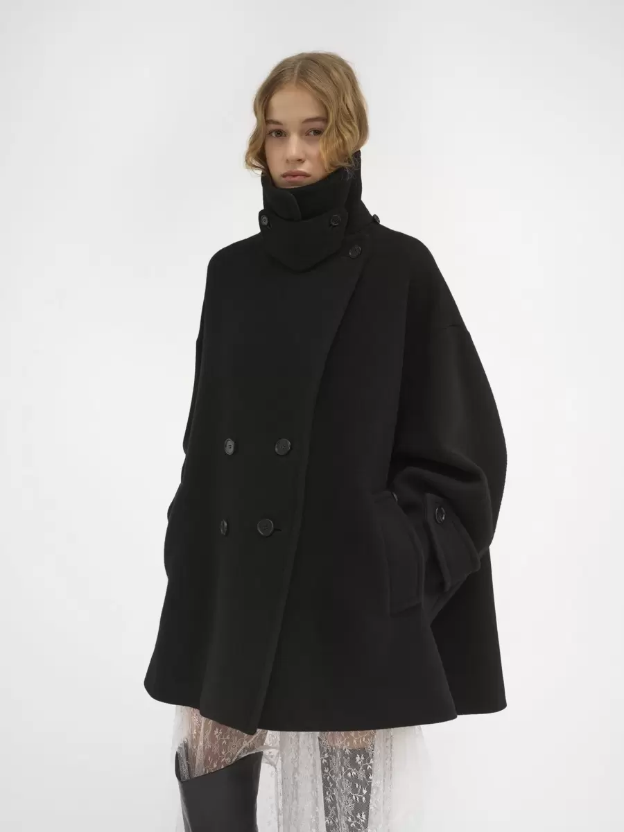 Dubbelknäppt överdimensionerad kappa i ikonisk mjuk ull med hakremskrage och hornknappar.