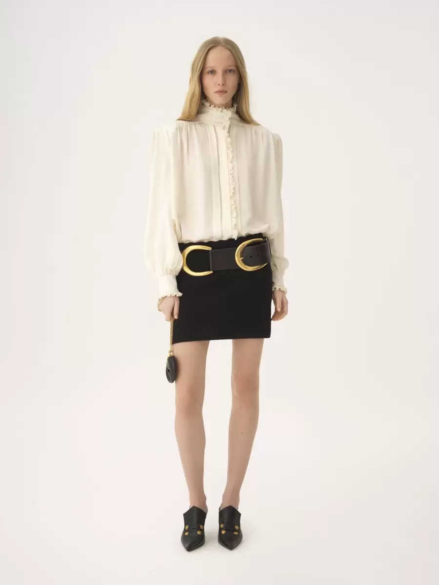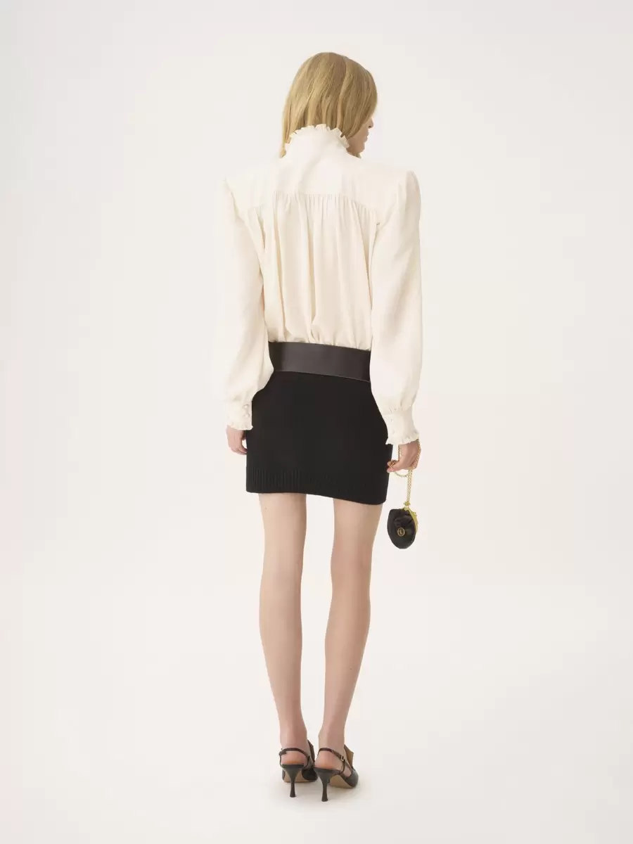Trimningsfull minikjol i en stickad ull- och kashmirkvalitet med låg påverkan, med vågig midja och ribbade kanter.