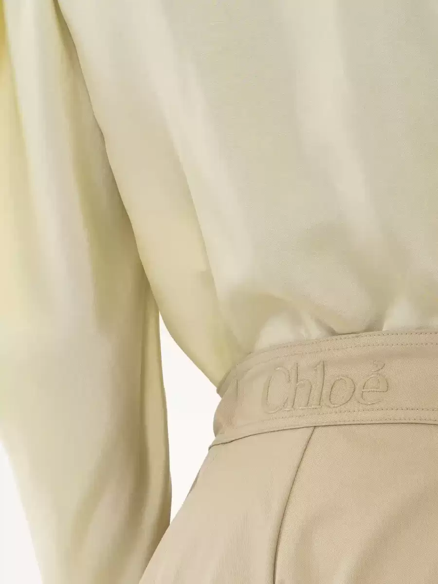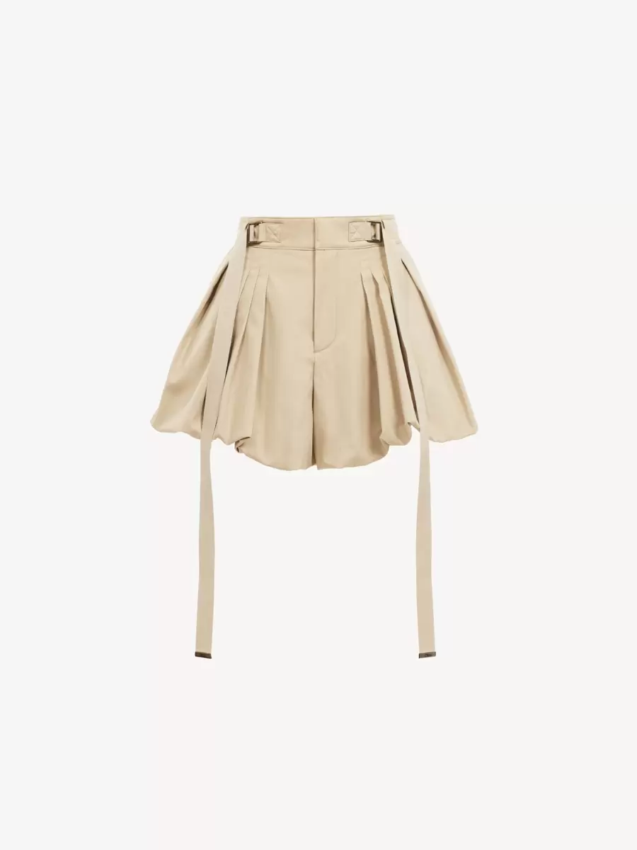 Miniballongshorts i lätt ekologisk bomullsgabardin med ton-i-ton broderi av Chloé-logotypen baktill. Det integrerade spännbältet har dinglande knytband med guldfärgade Chloé-logotyper.