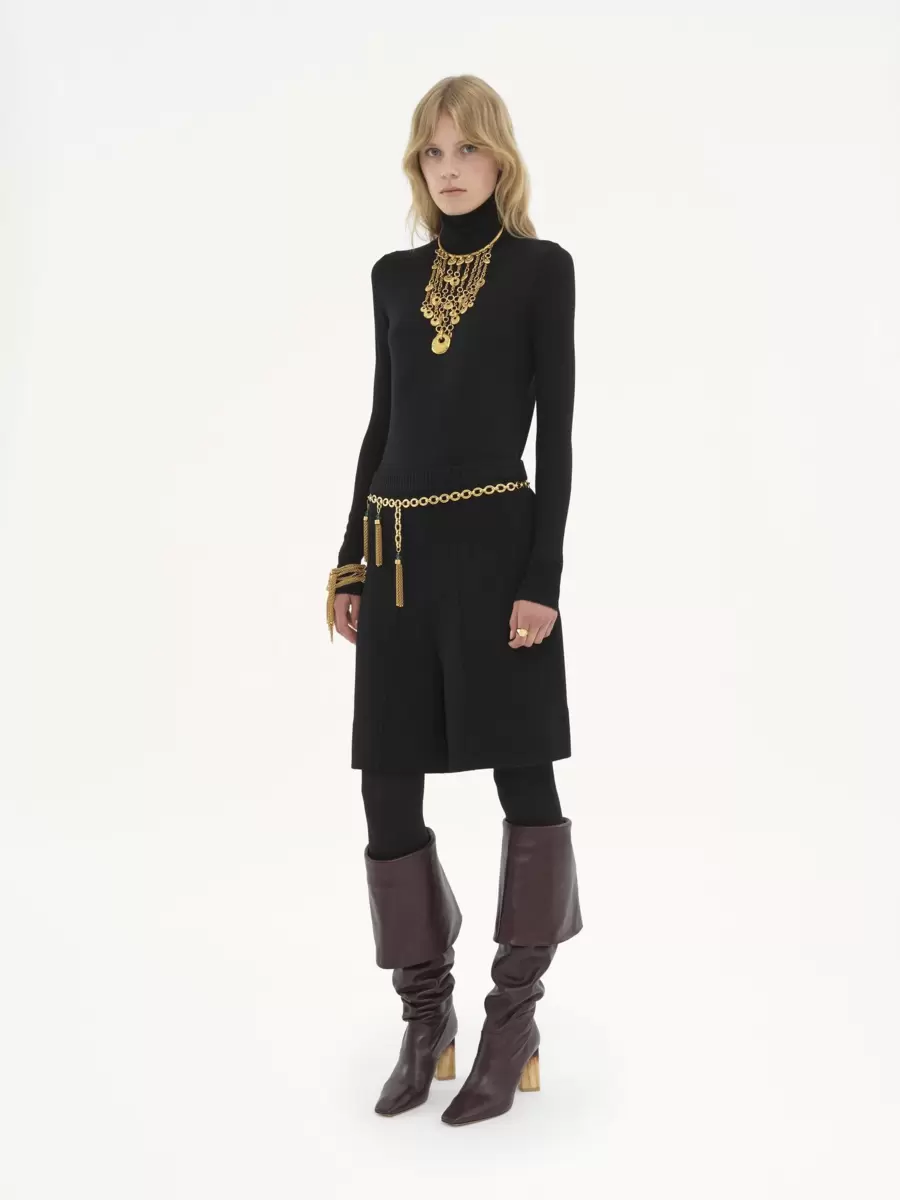 Tryckig polotröja i en lättviktig ribbad ulltröja med utsmyckade manschetter.