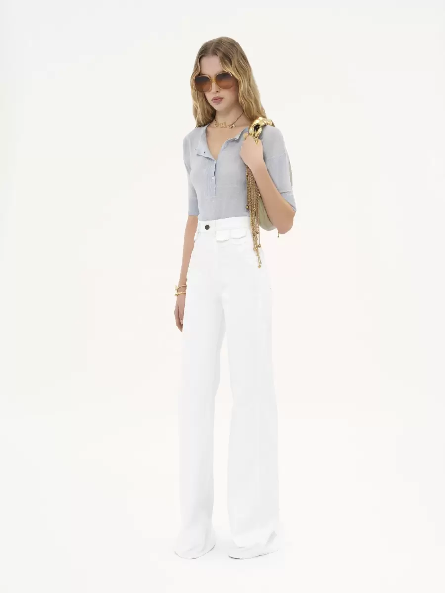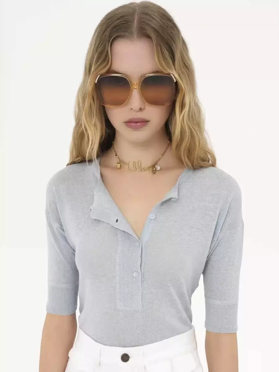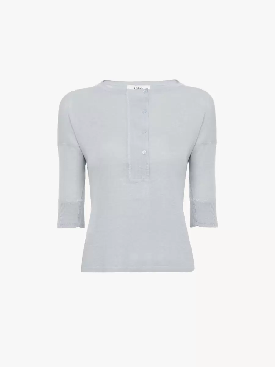 Kortärmad Henleyskjorta i en fin flamstickad blandning av linne och siden, detaljerad med pärlemorknappar.