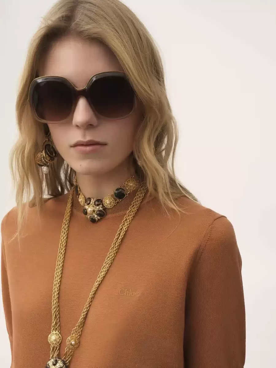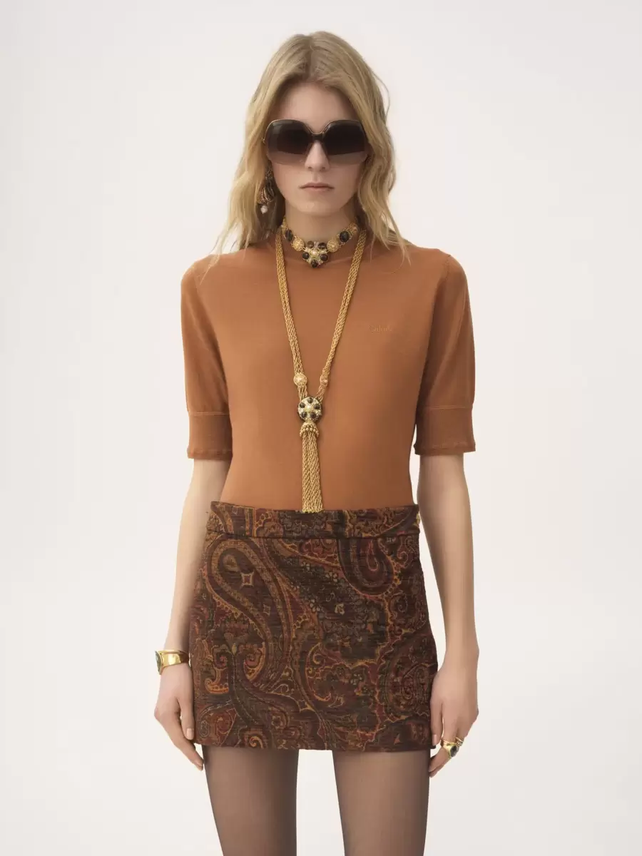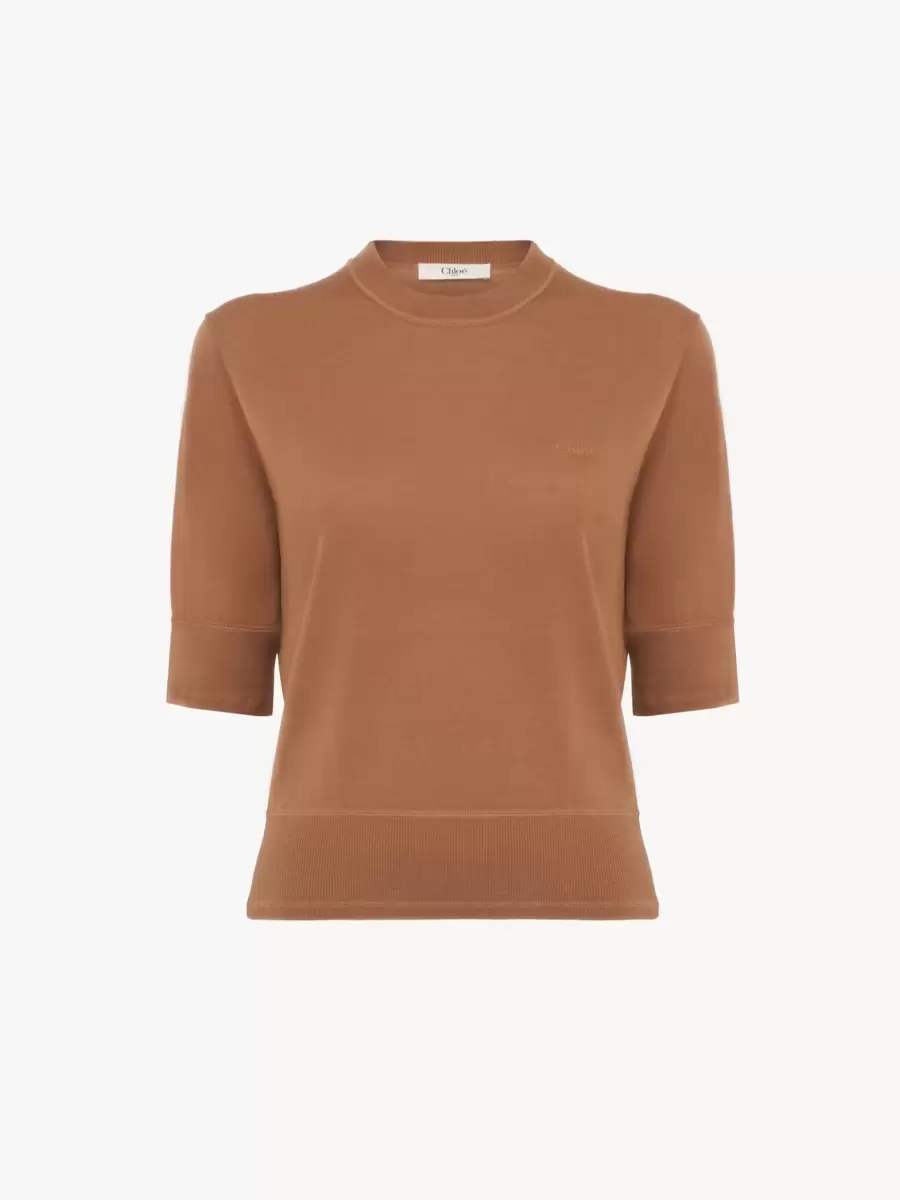 Kortärmad tröja i en merinoullstickad stickning med låg belastning, ribbade kanter och diskret Chloé-logotypbroderi på bröstet.