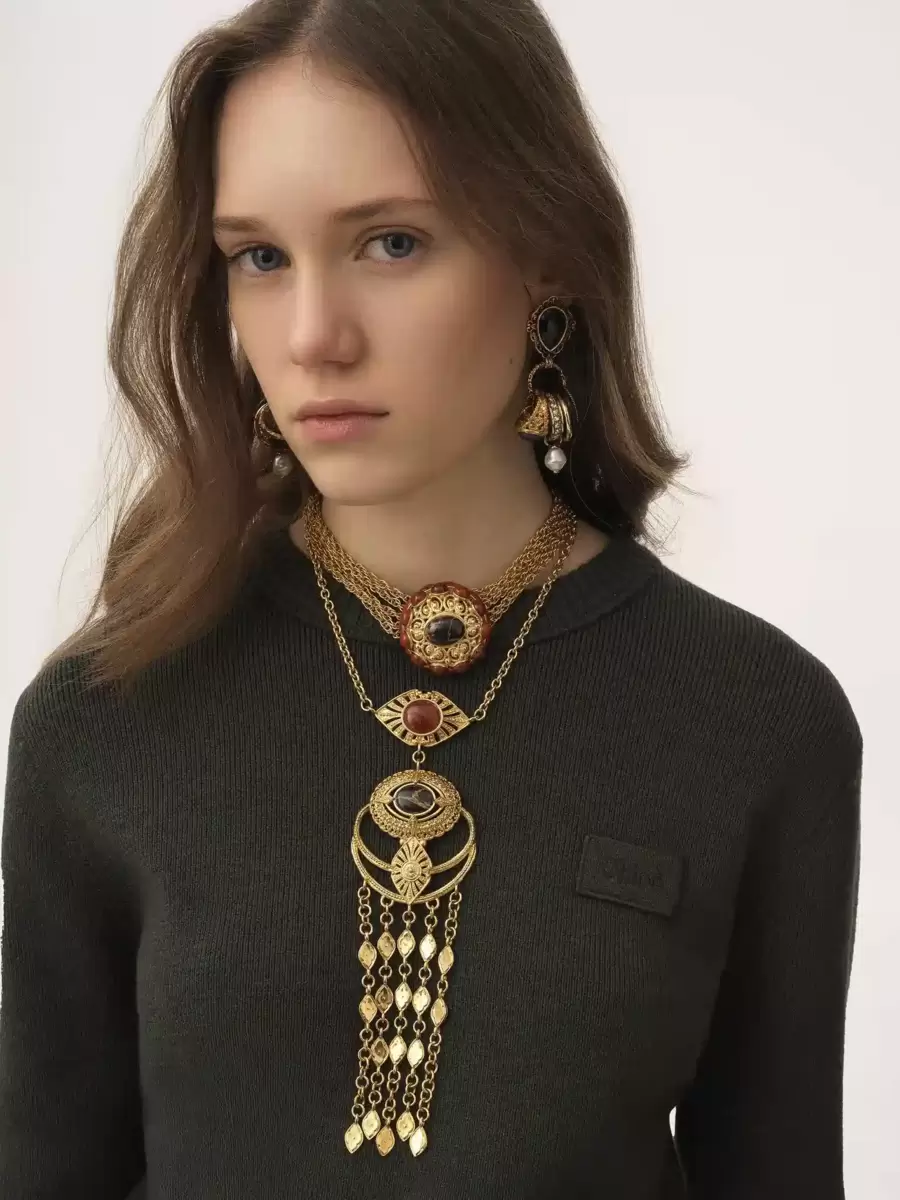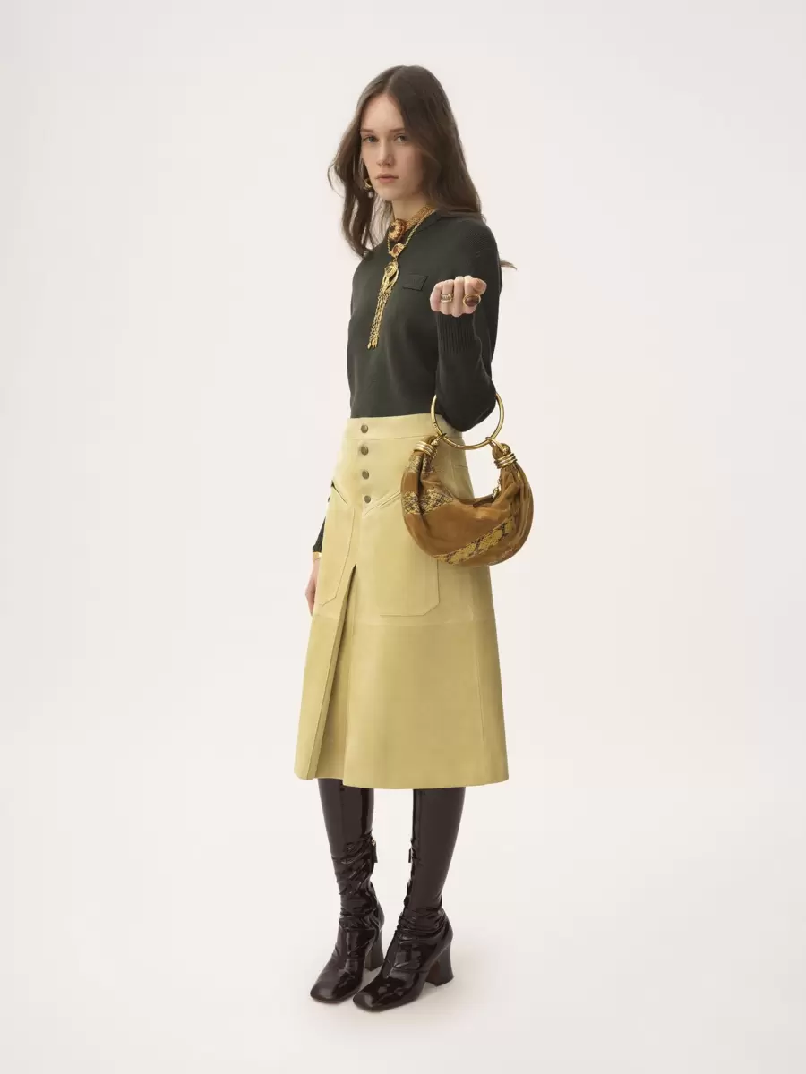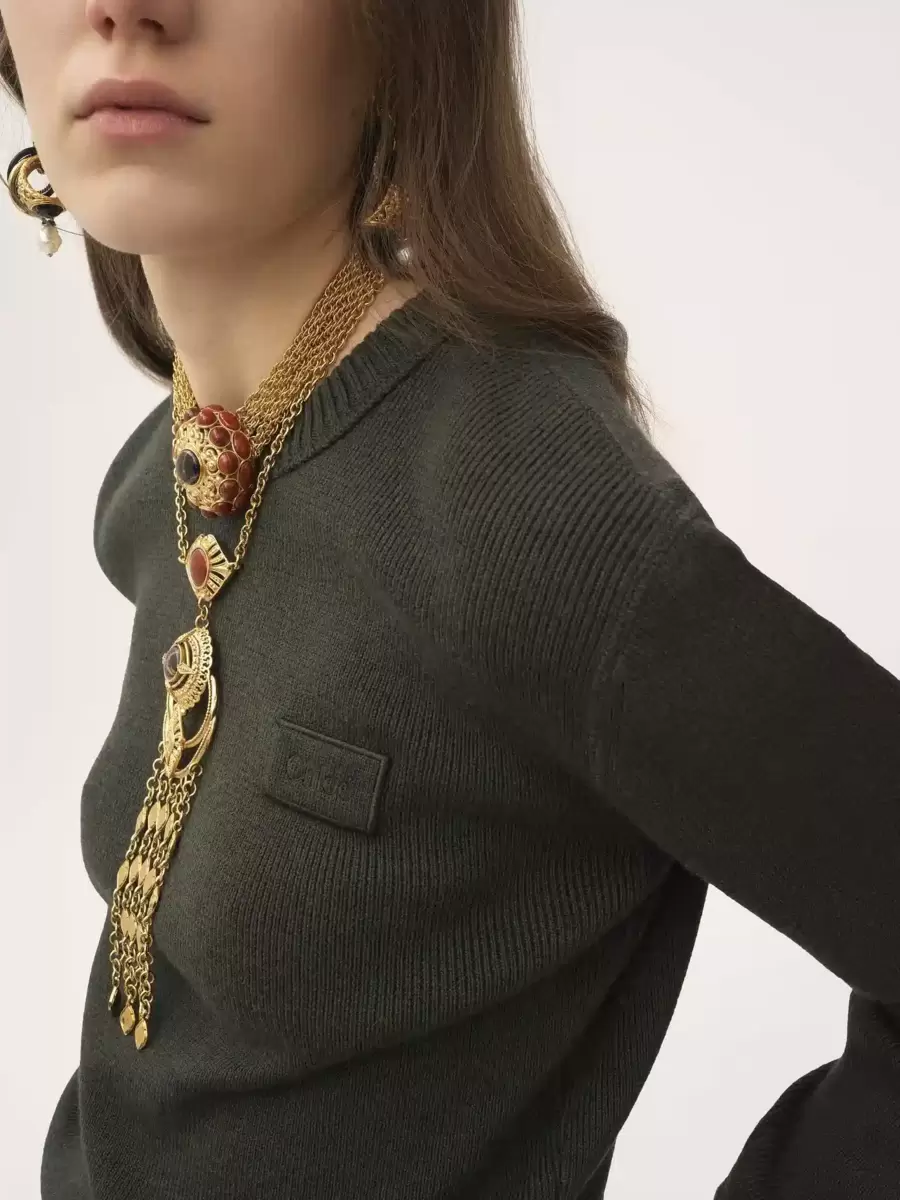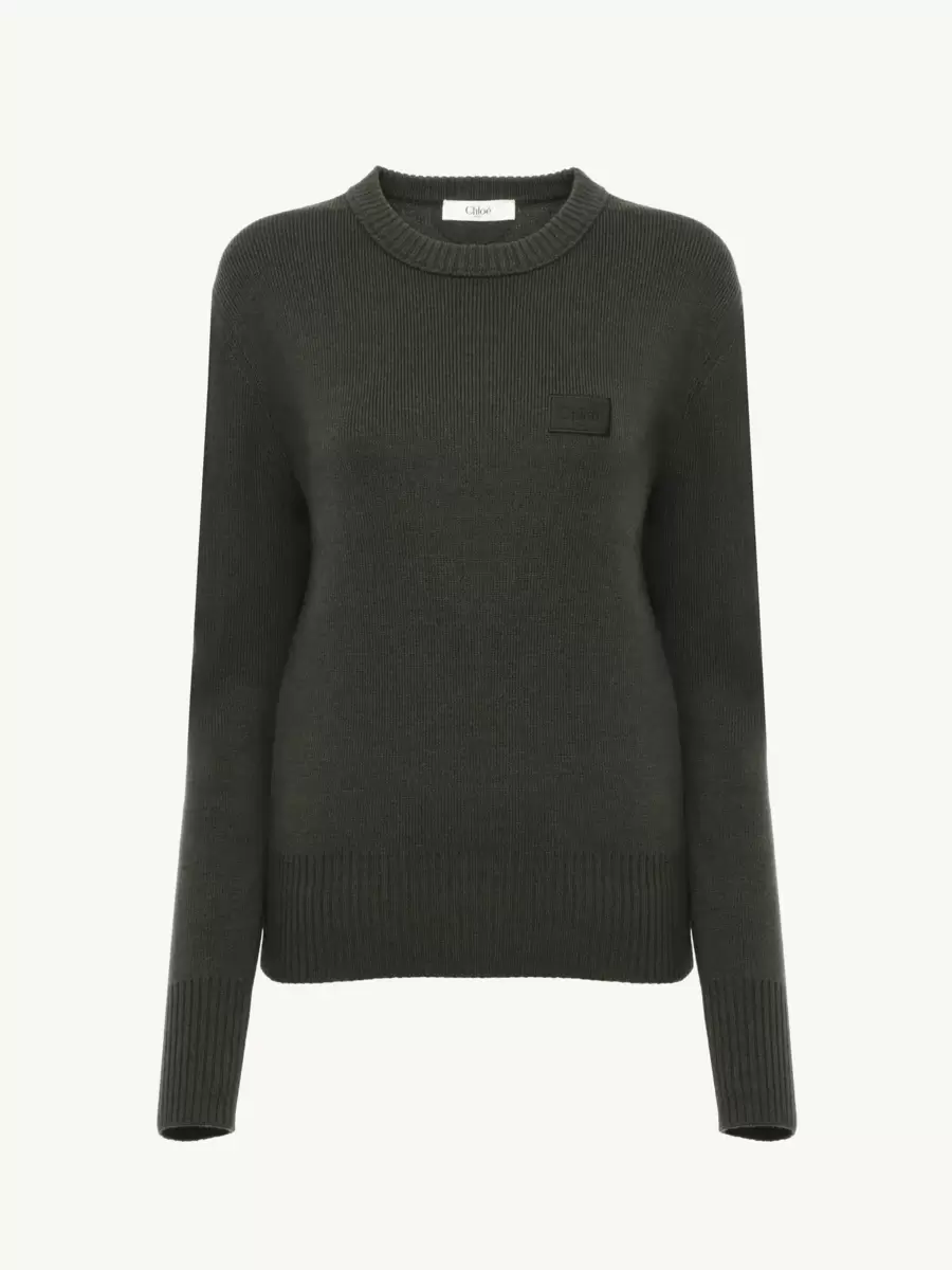 Rundringad tröja i merinoull, detaljerad med ribbade kanter och en subtil Chloé-logotyp på bröstet.