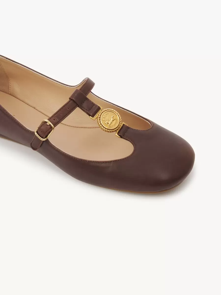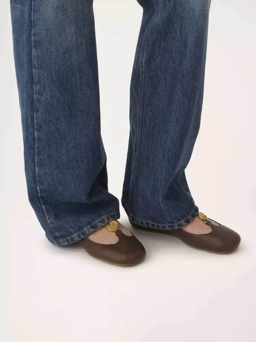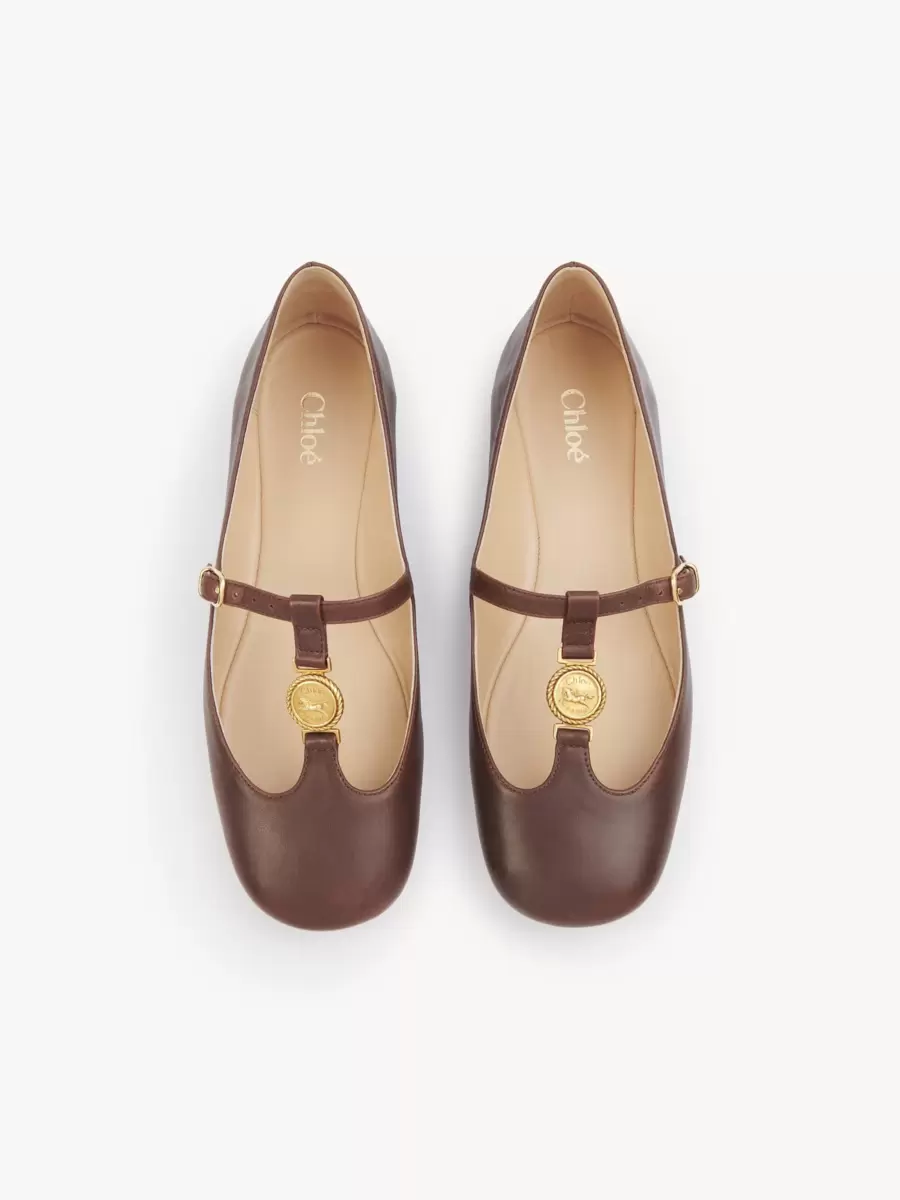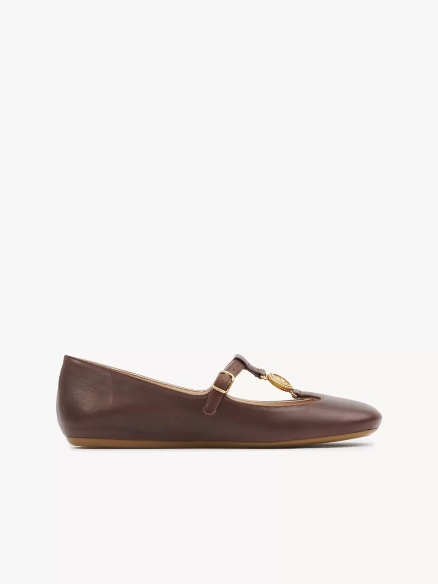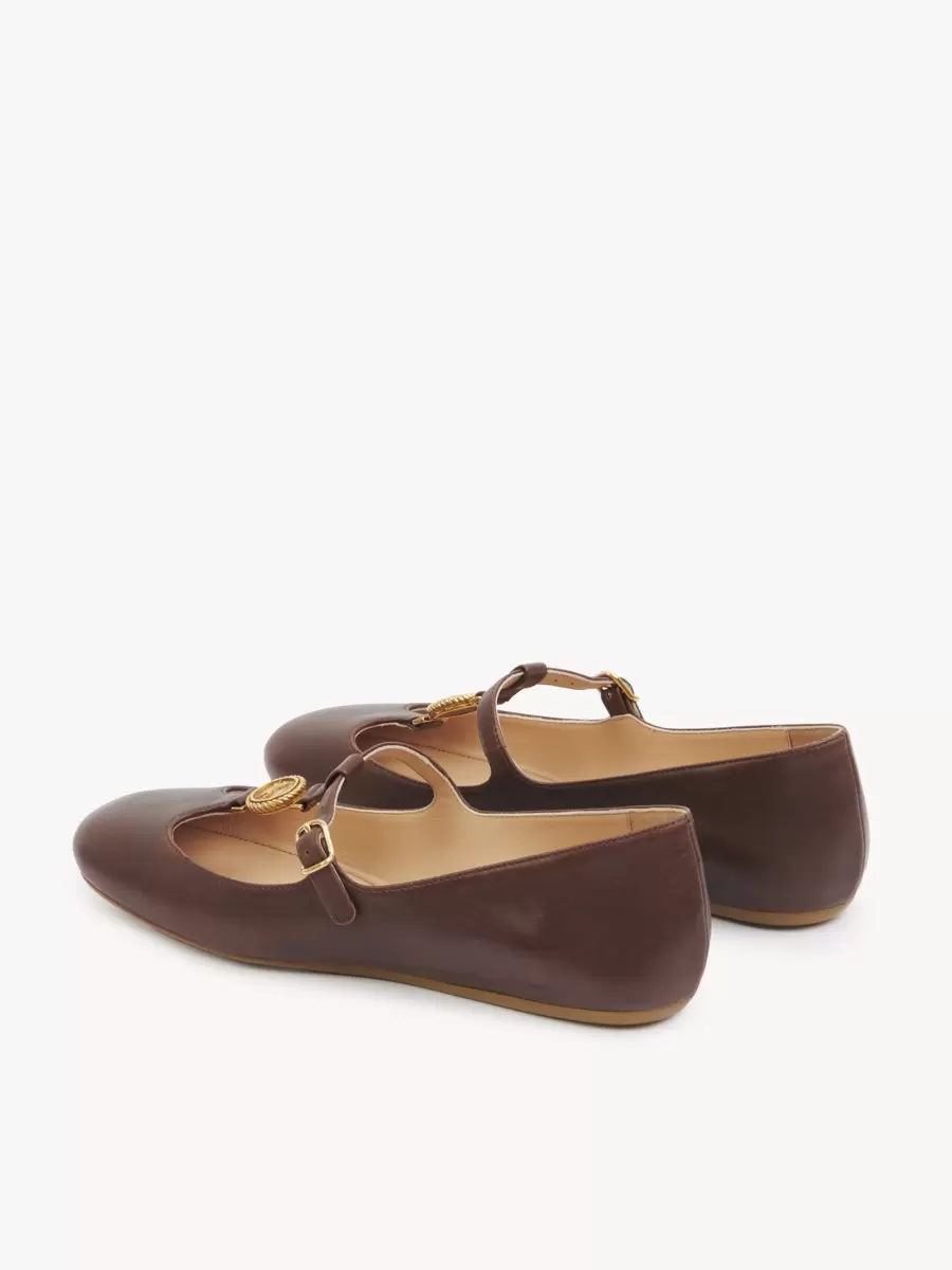 Dessa Leonore-ballerinor är tillverkade av glänsande lammskinn i en Mary-Jane-silhuett med en mjukt rundad tå och en lätt och smidig gummisula. Maisons signatur guldfärgade Horse Medal fulländar dessa ballerinaskor.