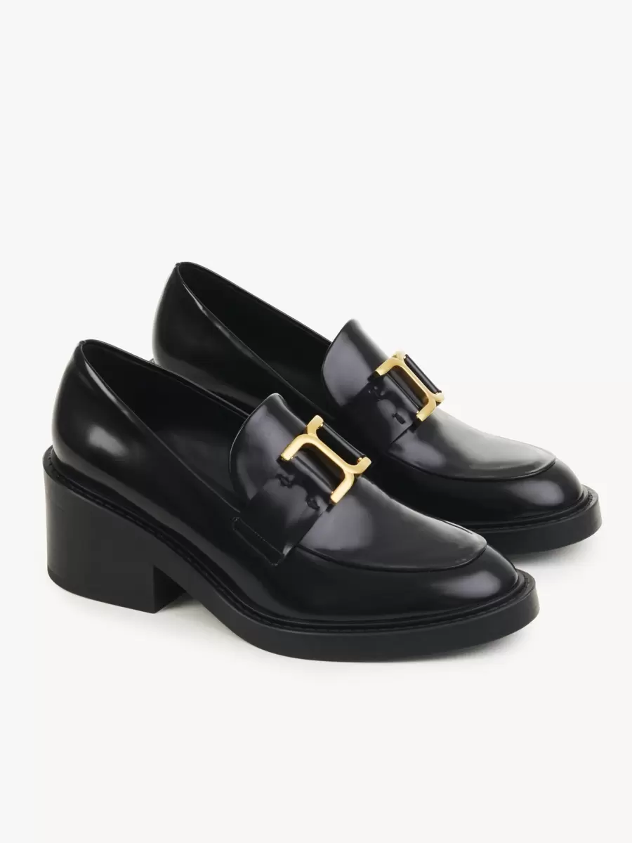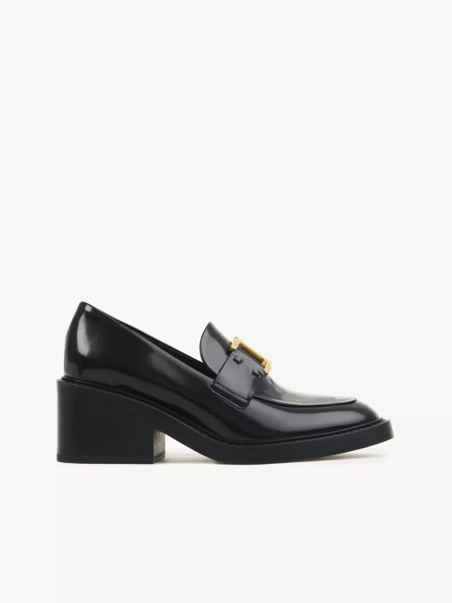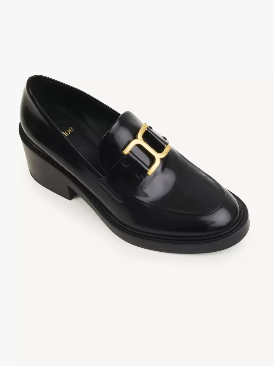 Dessa glansiga loafers i kalvskinn med klack, som omtolkar den klassiska Marcie-stilen, framhäver Maisons läderkunskap.