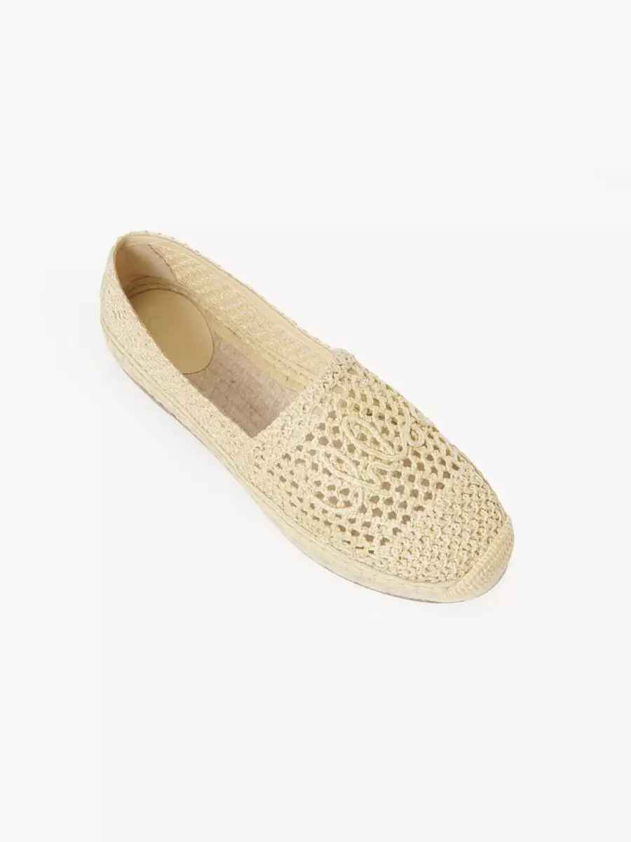 Tillverkade av virkat material, har Isla-espadrillerna en sula i naturlig manchester. Framsidan är broderad med en handskriven signatur inspirerad av ett vintage Chloé-bälte.