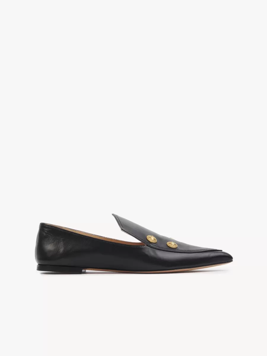 Tillverkade av smidigt lammskinn, har dessa Agnes-loafers en spetsig ovandel utsmyckad med guldfärgade knappar inspirerade av Maisons arv.