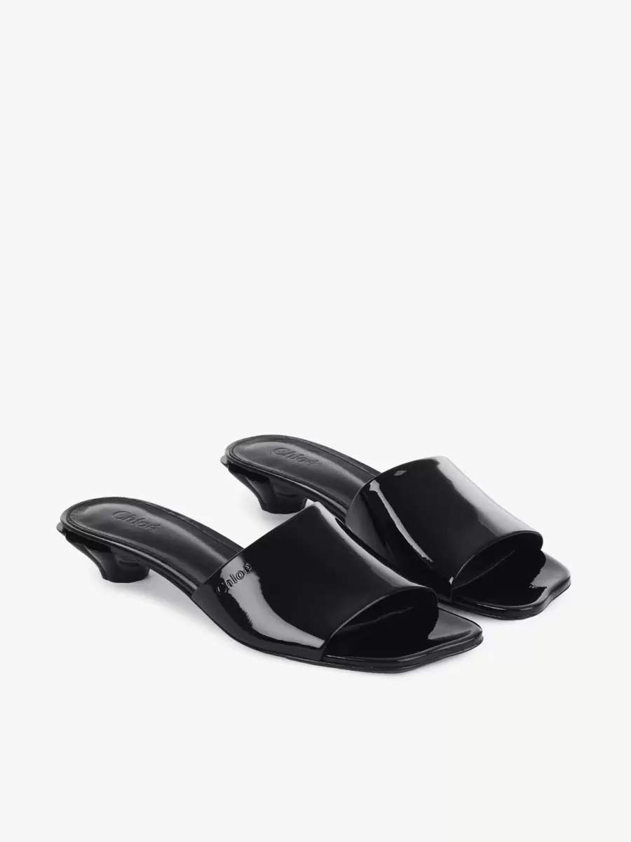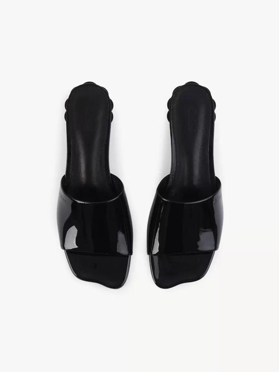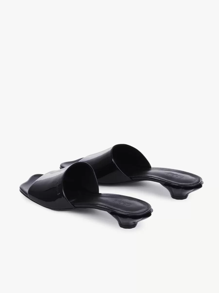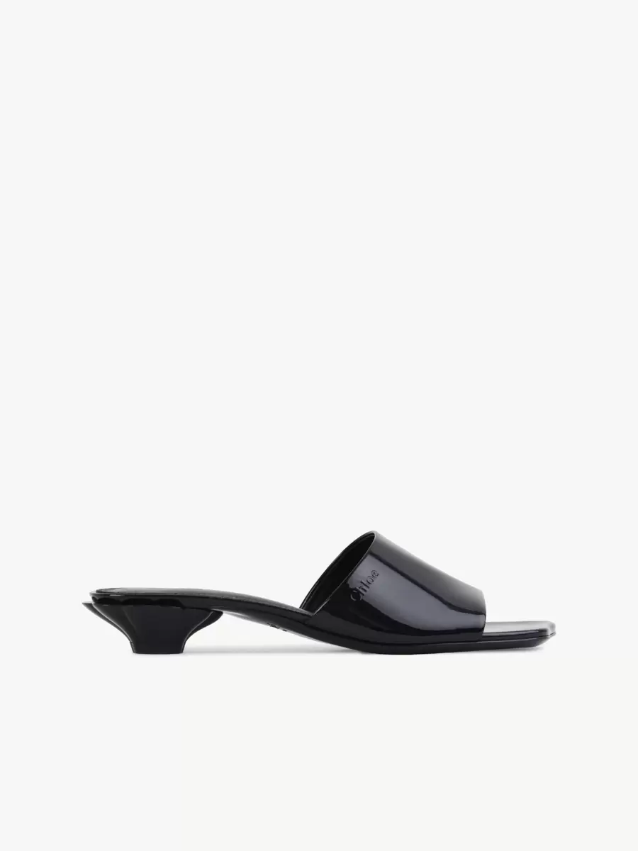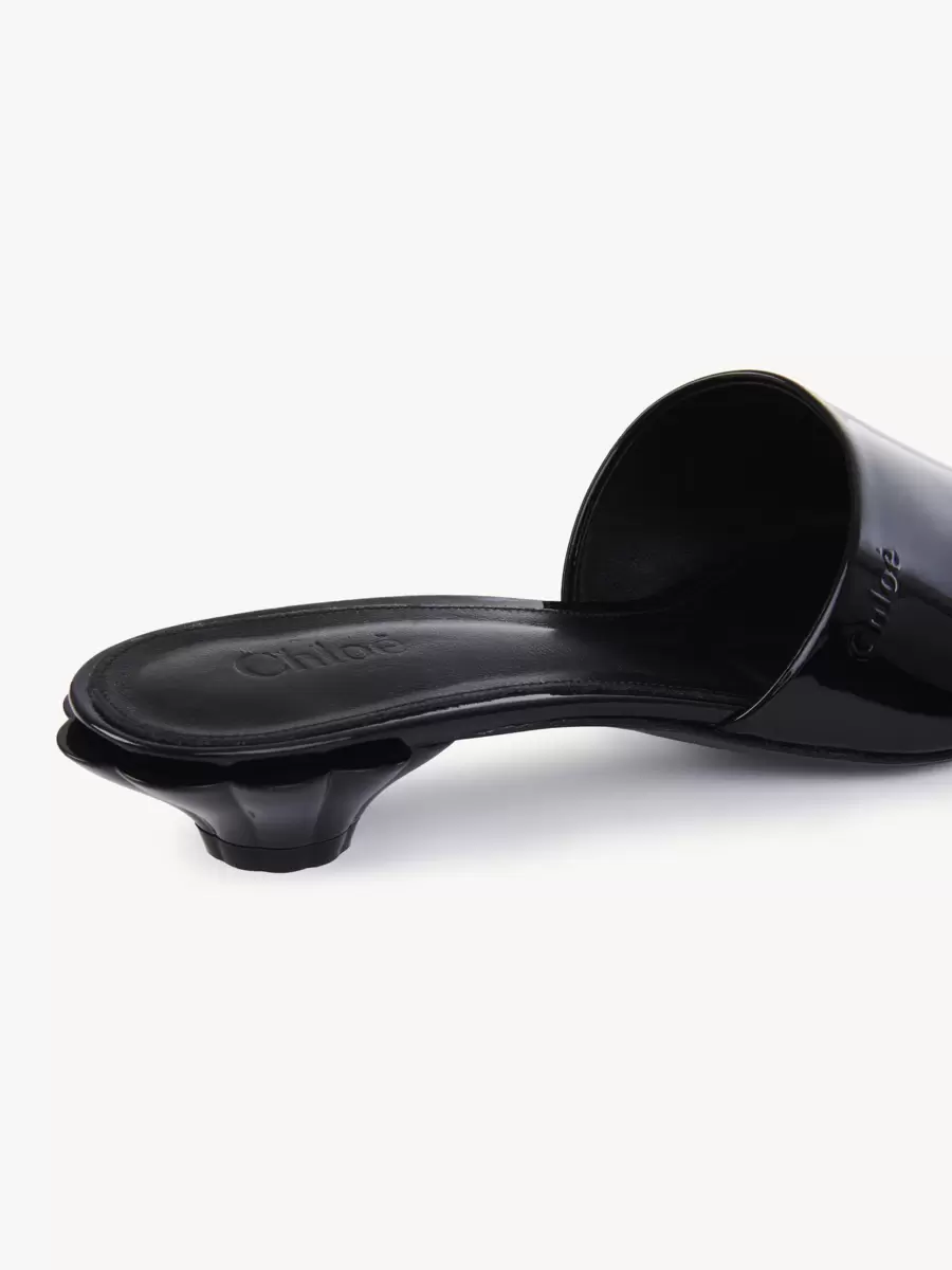 Flower-sandaletterna är tillverkade av lackerat kalvskinn och har en distinkt vågig sula och en snäckformad klack. En präglad Chloé-logotyp pryder ovandelen.