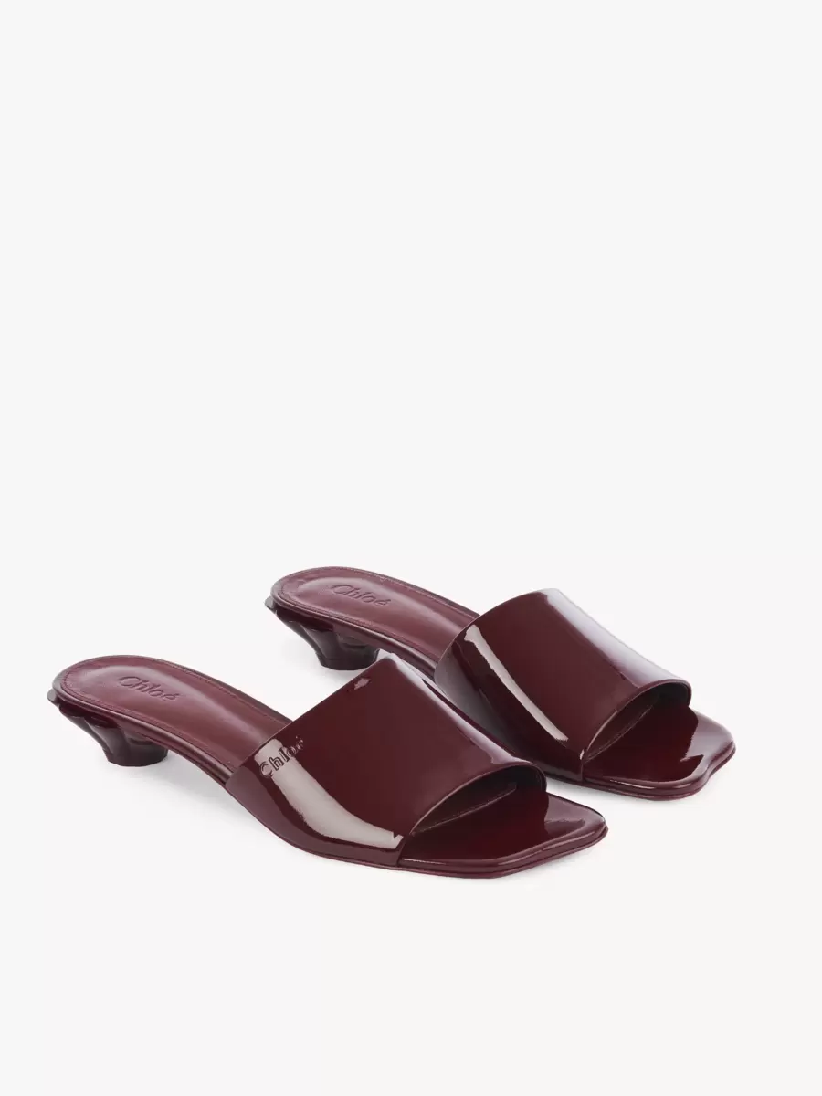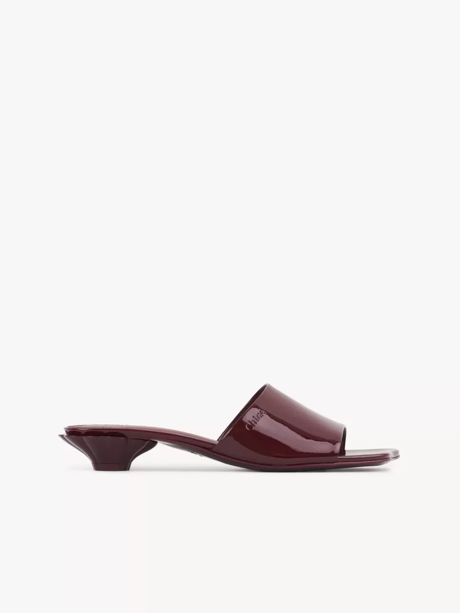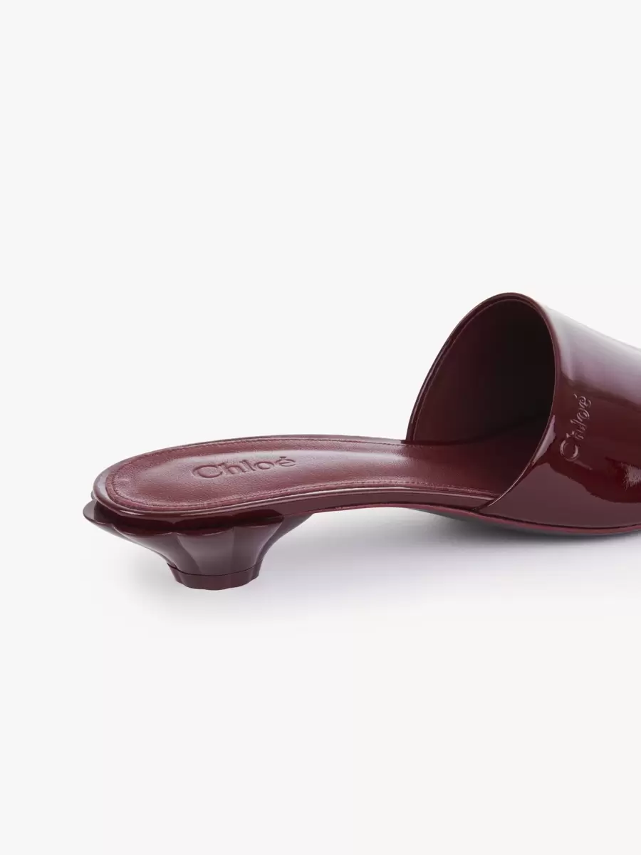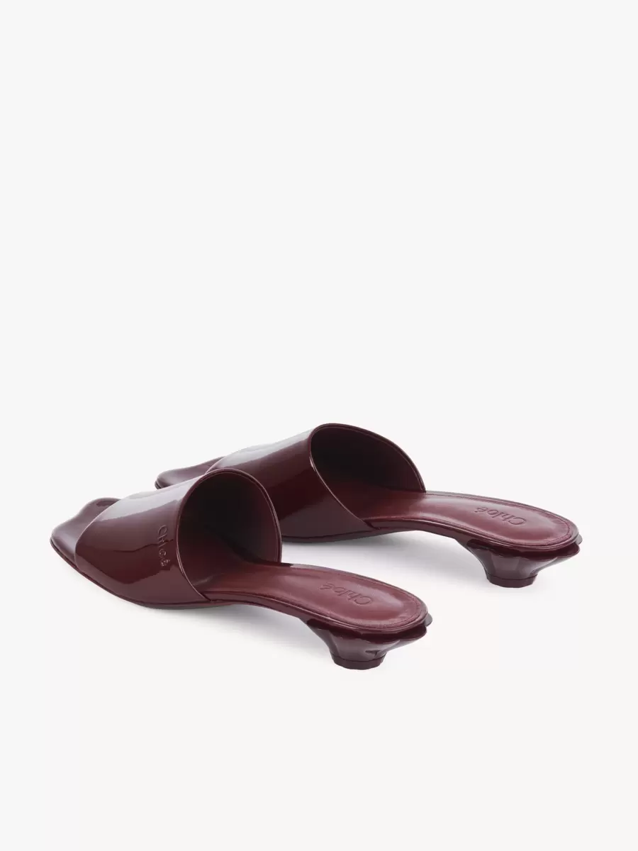 Flower-sandaletterna är tillverkade av lackerat kalvskinn och har en distinkt vågig sula och en snäckformad klack. En präglad Chloé-logotyp pryder ovandelen.