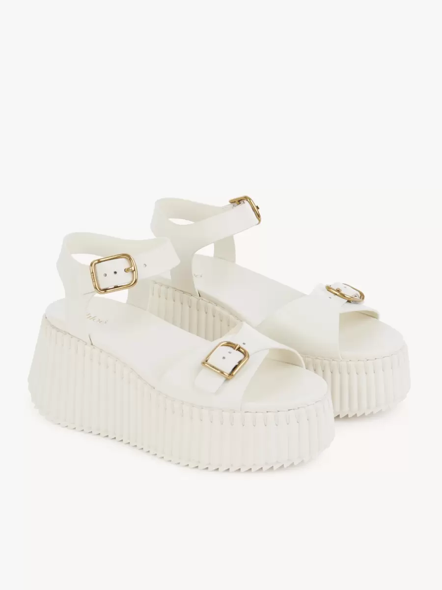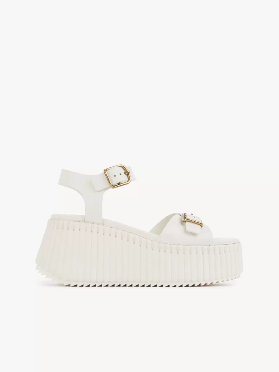 Tillverkade av vegetabiliskt garvat kohud, dessa hybrid Nama kilklacksandaler har dubbla remmar färdiga med Chloé-graverade spännen. De är placerade på en ikonisk, lätt och ultrabekväm återvunnen plattform, färdigställd med obefläckad filtsömnad som tar 4,5 timmar att tillverka för hand.