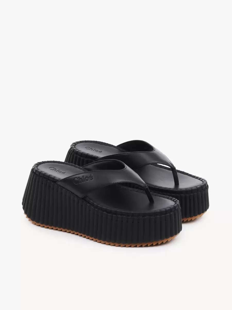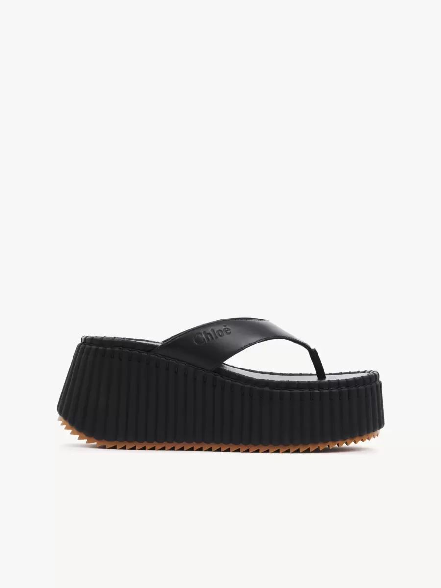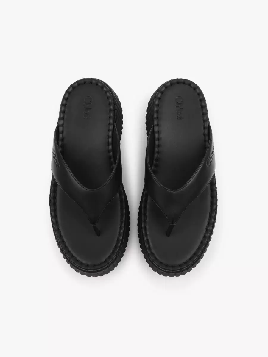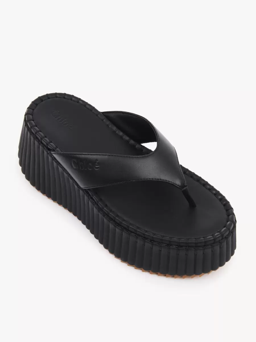 Dessa Nama-kilklackade sandaler är tillverkade av kalvskinn och har en rem framtill med Chloé-logotypen präglad. De sitter på en ikonisk, lätt och ultrabekväm återvunnen plattform, avslutad med obefläckad ton-i-ton filt-söm som tar 4,5 timmar att tillverka för hand.