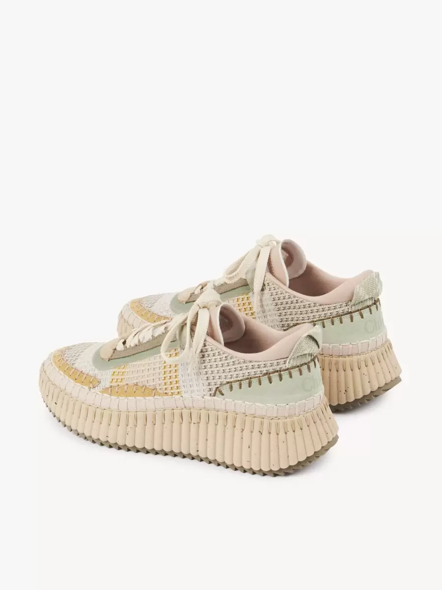 Den ultrabekväma och lätta strukturen har en rejäl, räfflad sula och en handsydd mesh-ovandel med Chloé-logotypen på baksidan och plösen. Bär dem året runt för en city-attity.