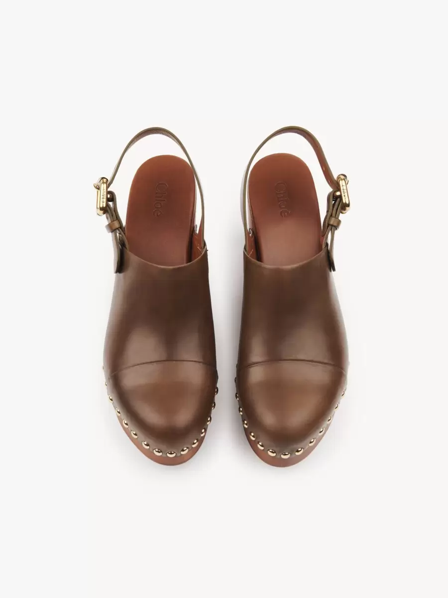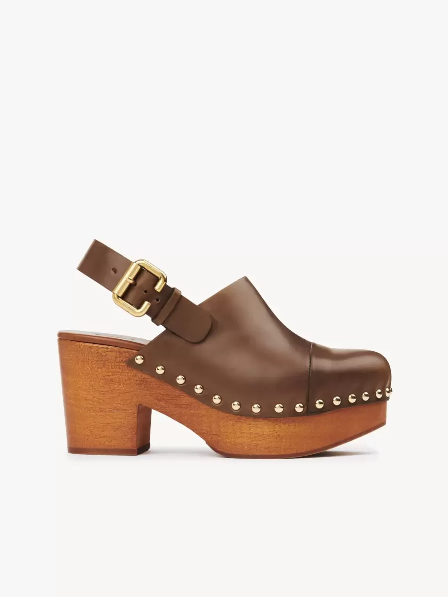 Guldfärgade nitar och en Chloé-märkt platta ger kontrasterande detaljer, medan Maisons Paddington-spänne fulländar dessa kilträskor.