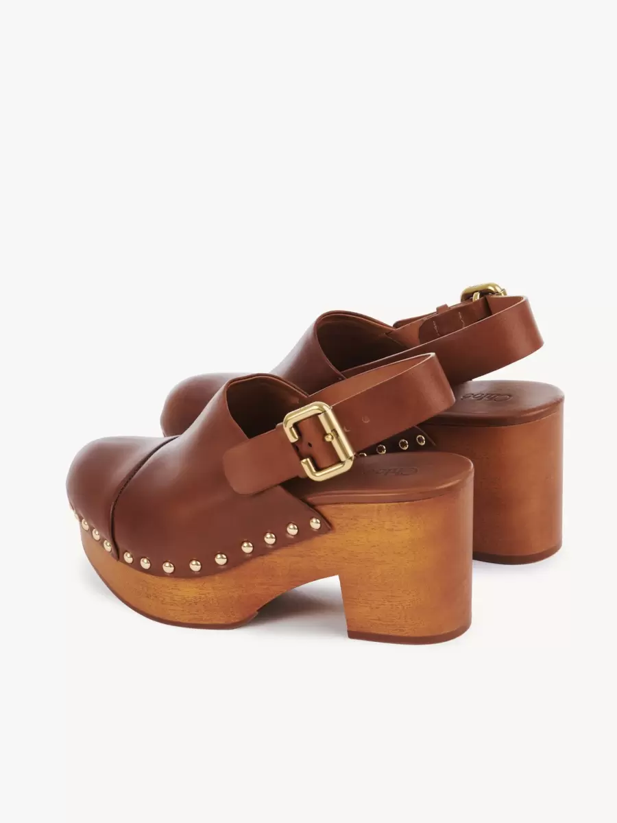 Guldfärgade nitar och en Chloé-märkt platta ger kontrasterande detaljer, medan Maisons Paddington-spänne fulländar dessa kilträskor.
