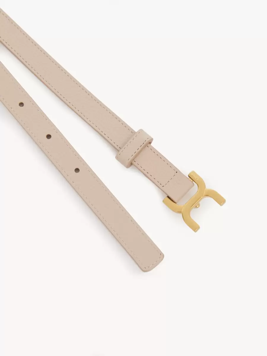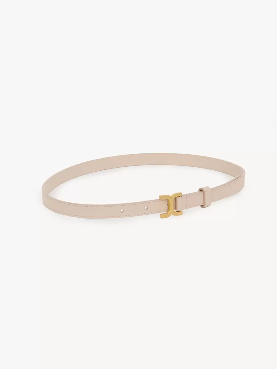 Detta Marcie-bälte är tillverkat av narvat kalvskinn i en tunn, feminin stil och har seriens ikoniska signatur i metallspännet. Designen är inspirerad av vintage Chloé Marcie-bälten för att bygga vidare på Maisons arv. Det tunna bältet, som fästs med en krage, har rena linjer för ett vardagsplagget som lyfter alla jeans och byxor. Flera hål låter dig justera passformen.