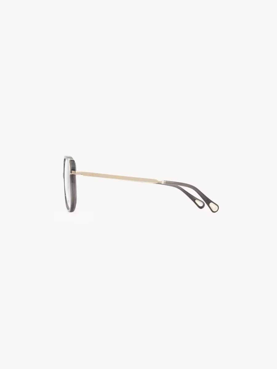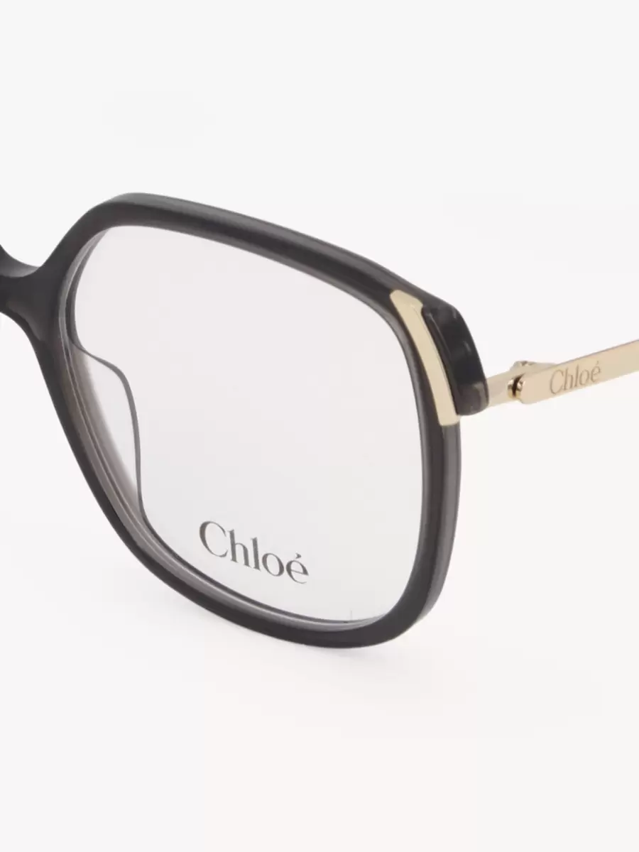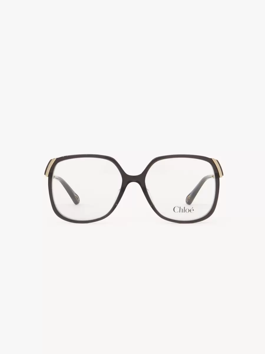 Chloé-logotypen detaljerar skalmarna medan droppformade öppningar vid skalmspetsarna gör dessa glasögon kompatibla med Chloés glasögonsmycken.