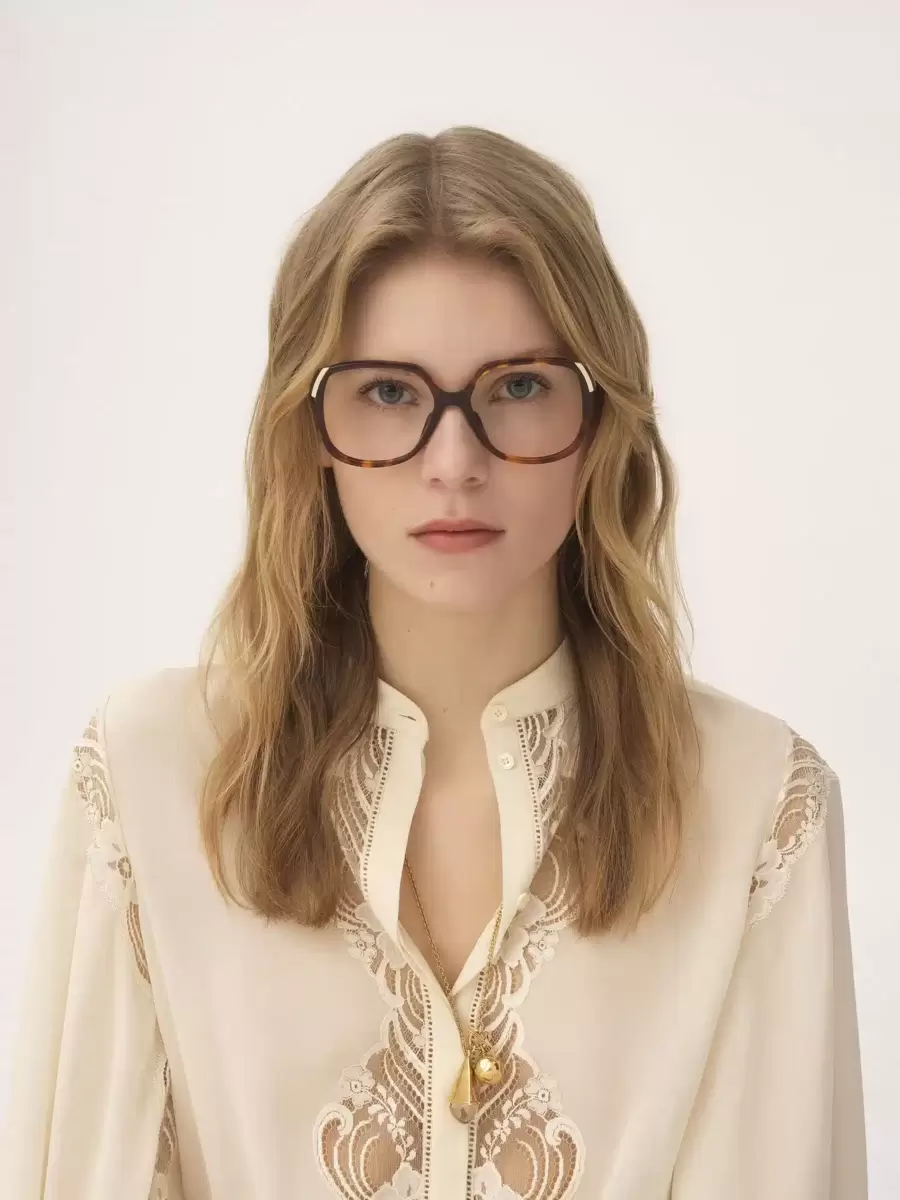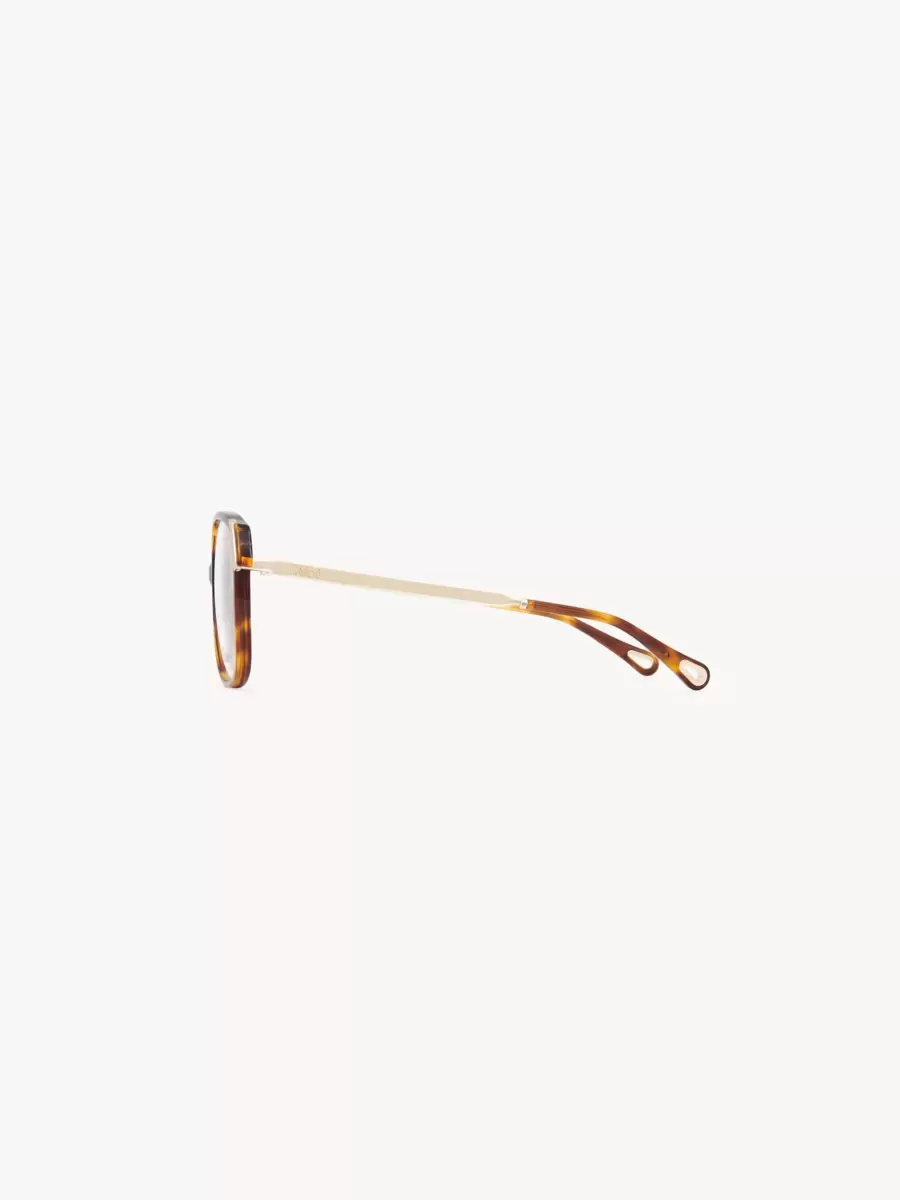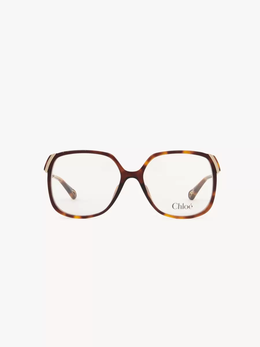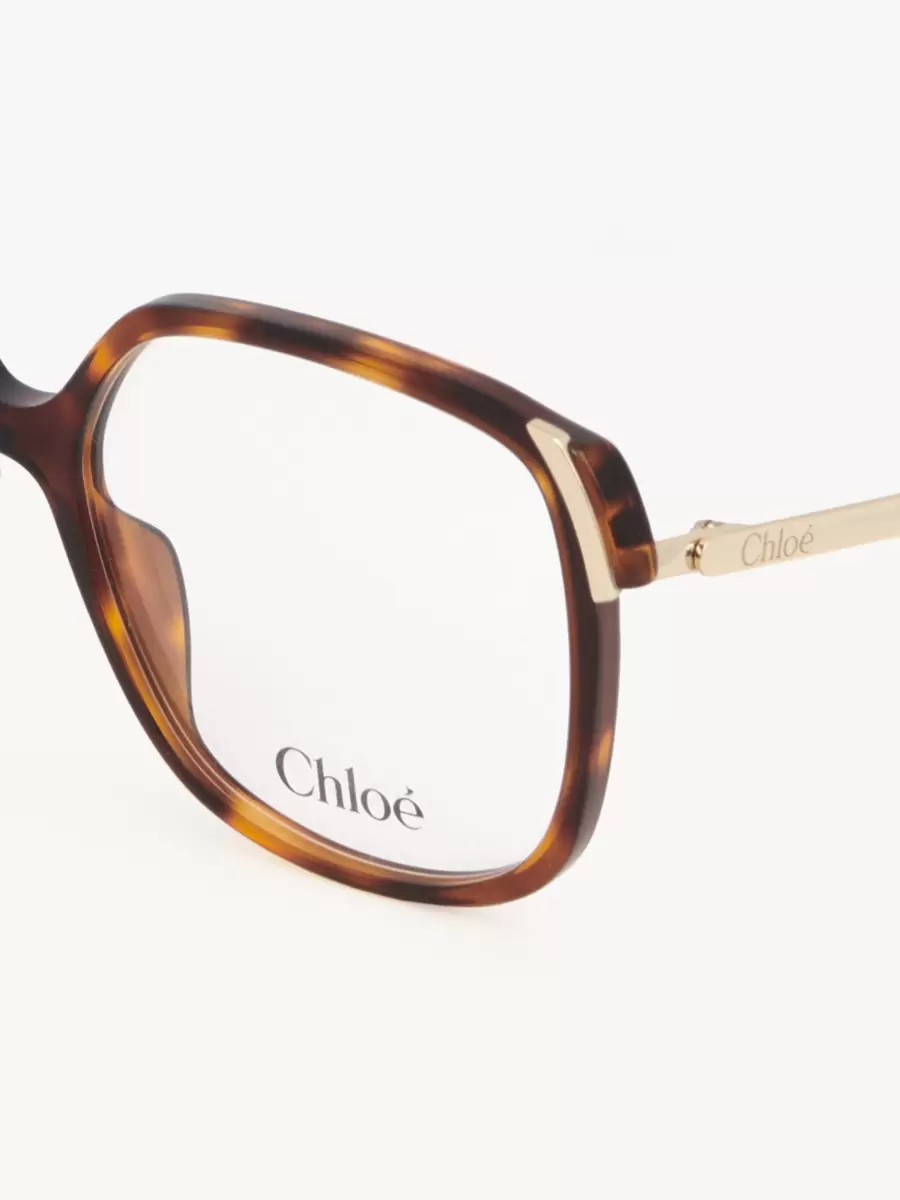 Chloé-logotypen detaljerar skalmarna medan droppformade öppningar vid skalmspetsarna gör dessa glasögon kompatibla med Chloés glasögonsmycken.