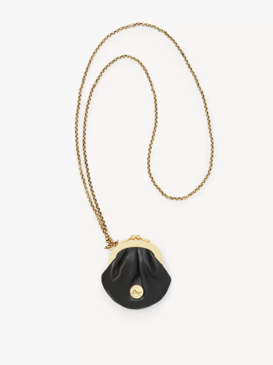 Denna mikro-Hästmedalj-myntväska är tillverkad av narvat buffelläder, i kombination med ett guldfärgat spänne och en avtagbar halsbandsrem. Framsidan är utsmyckad med Maisons ikoniska medalj med en präglad bild av en galopperande häst och en Chloé Paris-logotypgravyr.