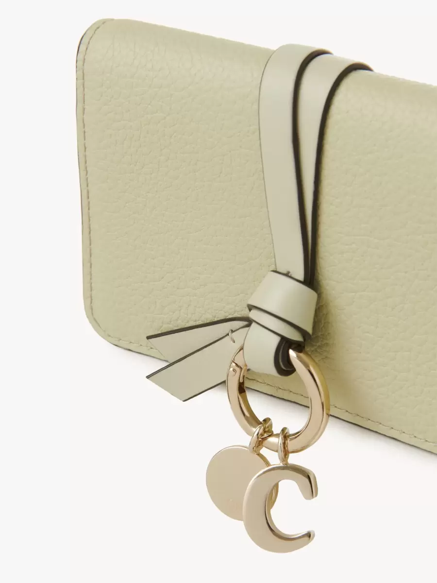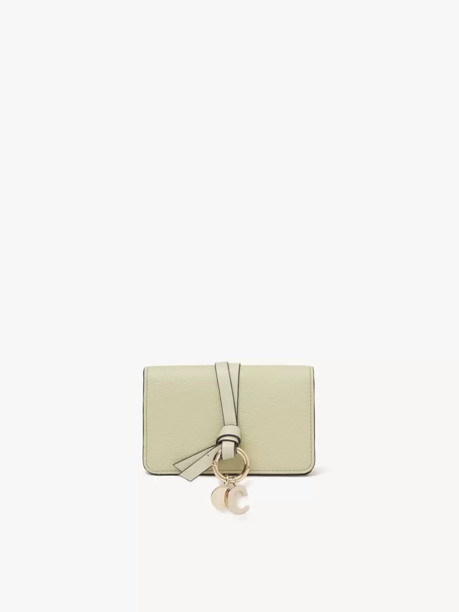 Maisons ikoniska Alphabet-linje inkluderar denna kompakta korthållare i narvat och glänsande kalvskinn. Den är stor nog att lätt passa i en kuvertväska eller liten väska och har ett huvudfack och en platt ficka. Knutna läderlänkar detaljerar framsidan, avslutad med Chloé-designade gyllene initialberlocker.