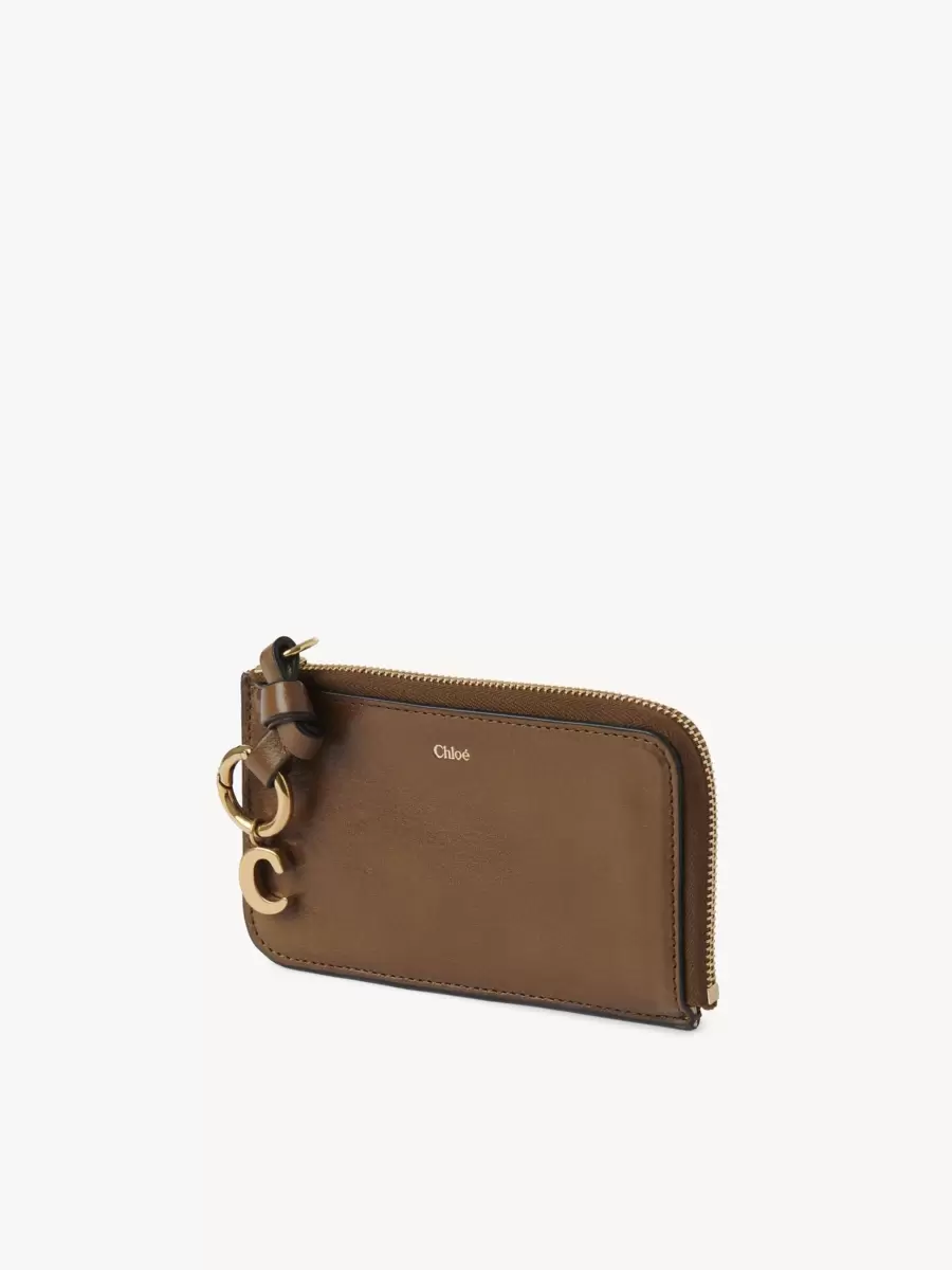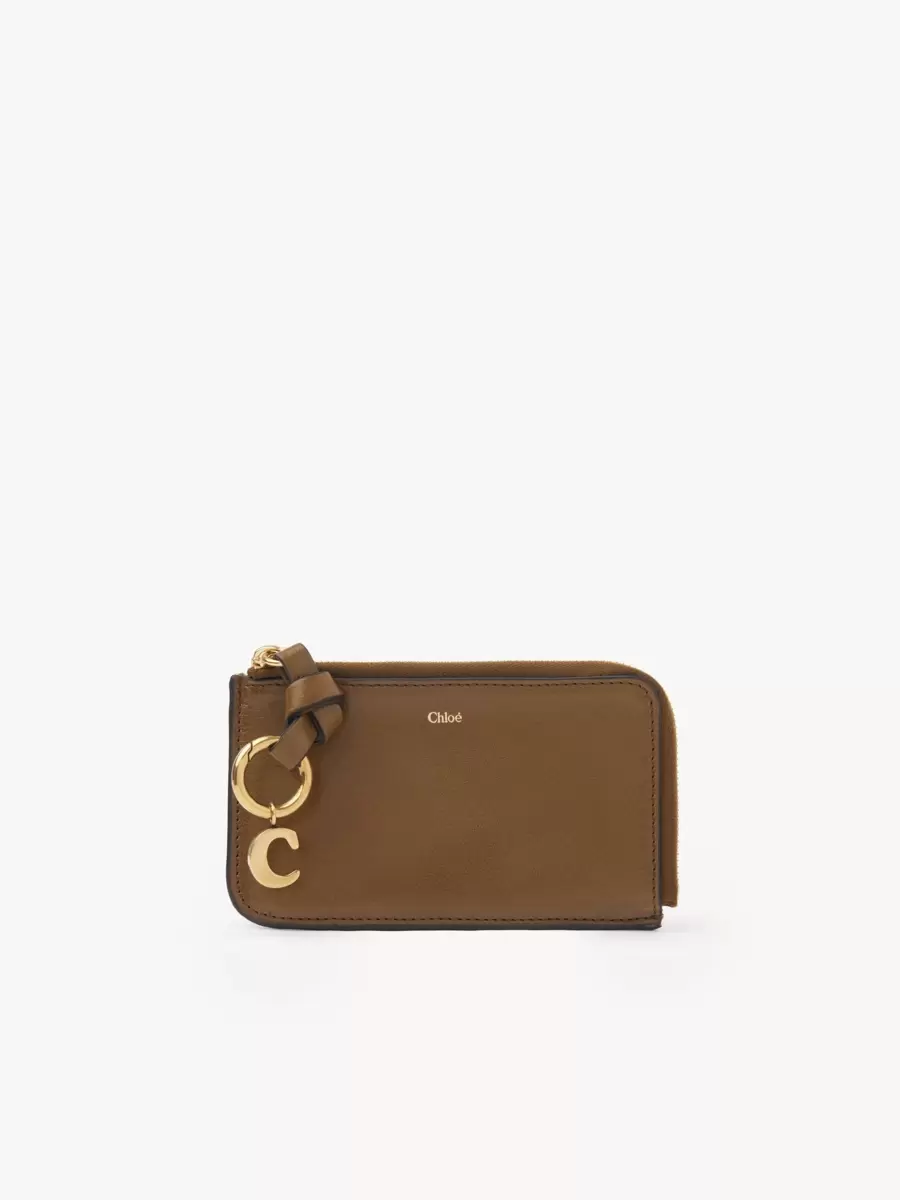 Maisons ikoniska Alphabet-serie inkluderar denna plånbok i naturligt glänsande buffelläder. Den är storleksanpassad för att passa dina nödvändigheter, har flera kortfack och en platt ficka på baksidan. En knuten läderlänk är utsmyckad med Chloé-designade gyllene initialberlocker.