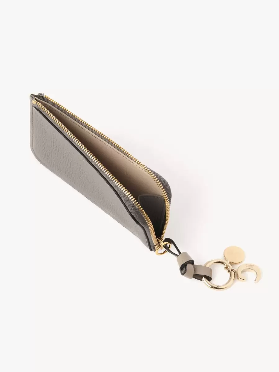 Närvat kalvskinn ger en elegant textur, medan en guldfärgad metallögla fäst vid den knutna läderlänken ger slående detaljer. Lägg till din ursprungliga charm till denna lilla myntplånbok för dekorativa, personliga detaljer.