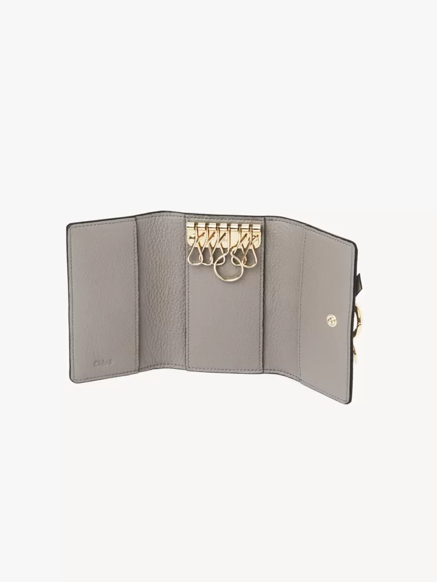 Maisons ikoniska Alphabet-serie inkluderar detta nyckelfodral i narvat och glänsande kalvskinn, med flera nyckelringar och två kortfack. Framsidan är avslutad med en knuten länk och Chloé-designade gyllene initialberlocker.