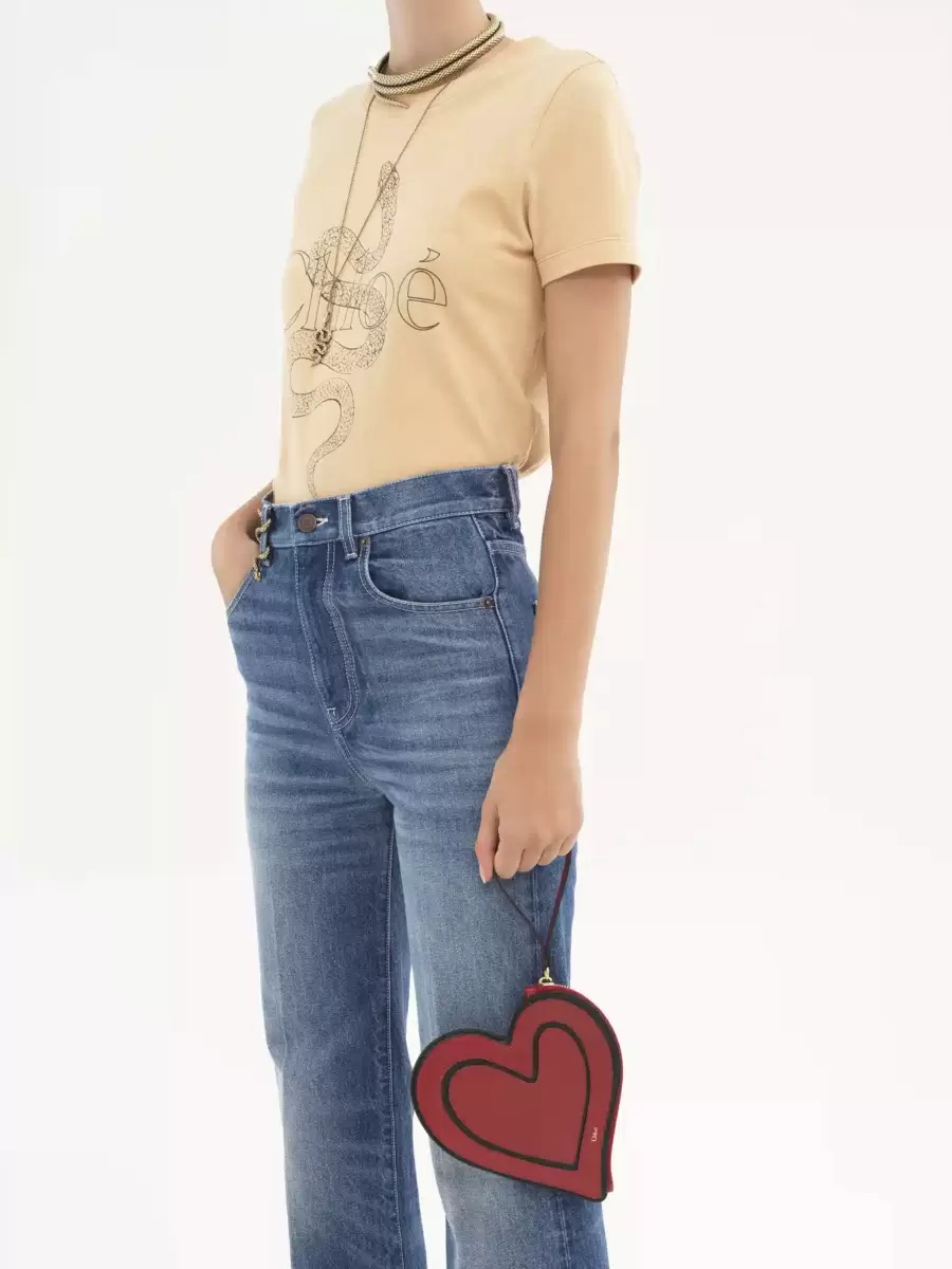 Tillverkad av glänsande kalvskinn, uttrycker denna Chloé Symbols Heart platta väska kreativ chef Chemena Kamalis vision om Chloés hjärta. Designad för att hålla det nödvändigaste, kommer denna lekfulla accessoar med en rem för hand- och handledsbärande.
