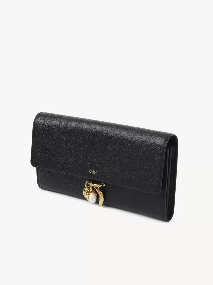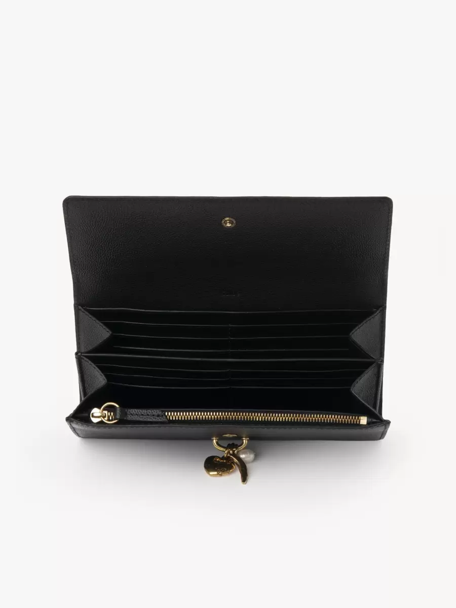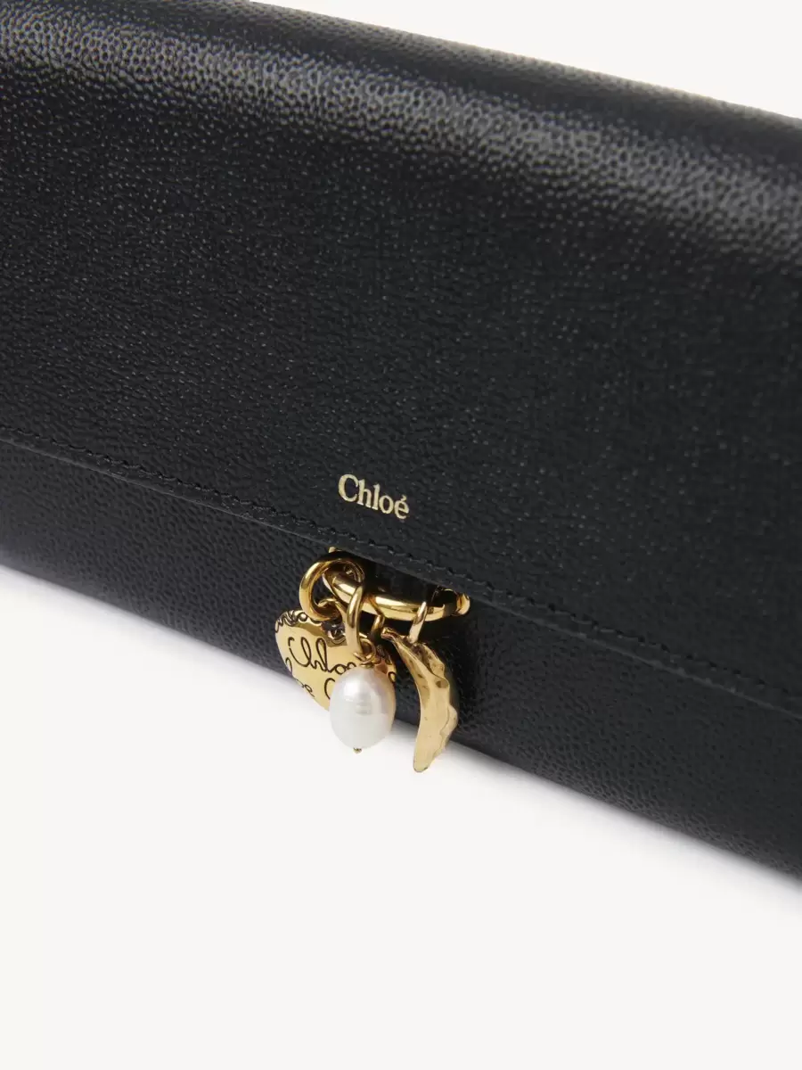Denna långa plånbok med lock från Chloé Charms är tillverkad av glansigt kalvskinn och har två huvudfack, två fickor och flera kortfack.