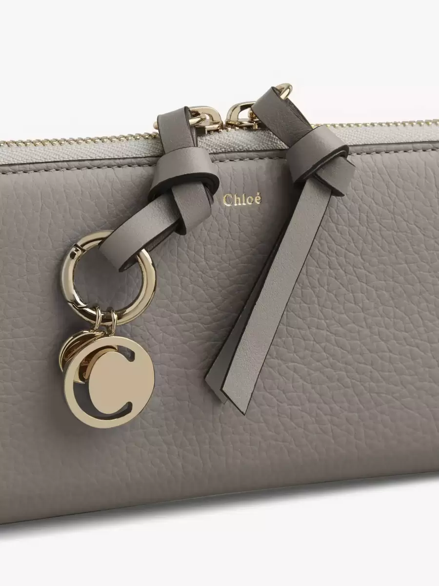Med lite kreativitet kan plånbokens rena linjer vackert utsmyckas med handplockade gyllene initialberlocker med Maisons slående design. Fina läderlänkar med en ring och Chloé-medalj säkrar initialerna.