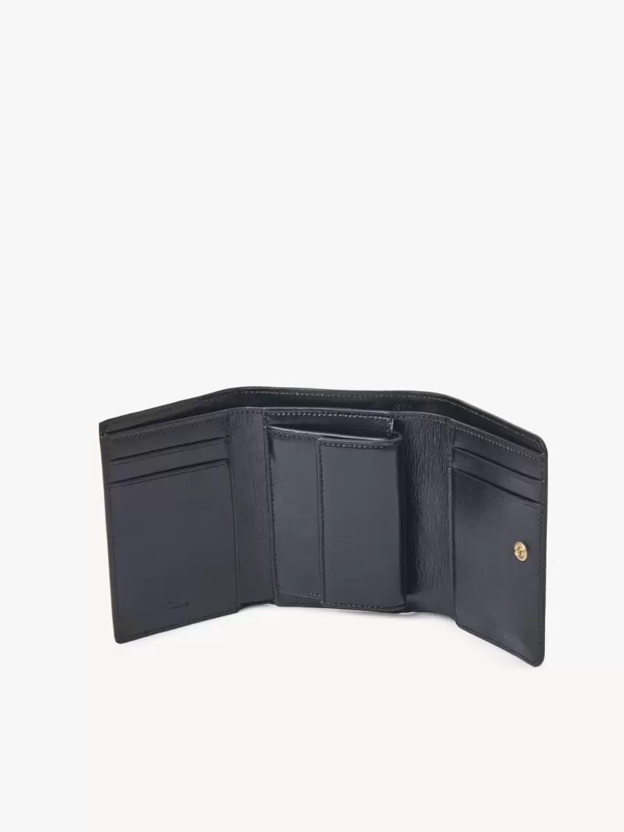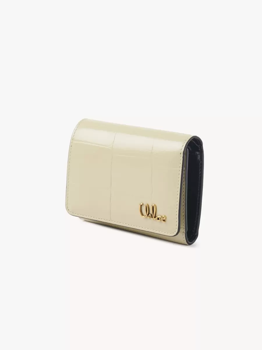 Tillverkad av kalvskinn med krokodileffekt kombinerar denna lilla Chloé Iconic trippelviktsplånbok en minimalistisk design med en metallisk signatur från Maisons arkiv.
