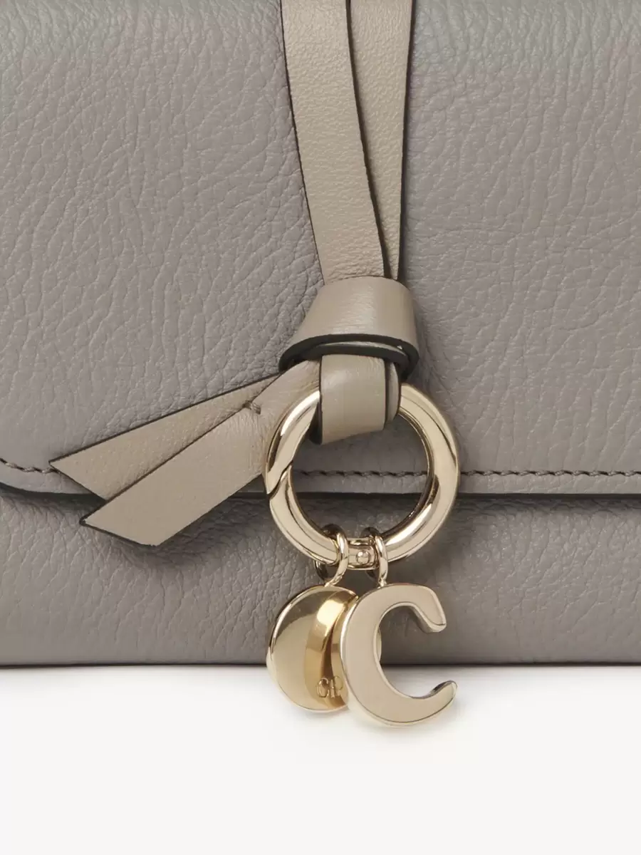 Maisons ikoniska Alphabet-kollektion inkluderar denna trippelvikta plånbok i narvat och glänsande kalvskinn. Den är designad för att rymma det viktigaste och har flera kortfack och en platt ficka. Framsidan är avslutad med en knuten länk och Chloé-designade gyllene initialberlocker.