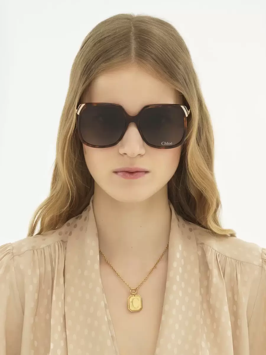 Droppformade öppningar vid skalmarna gör dessa solglasögon kompatibla med Chloés glasögonsmycken.