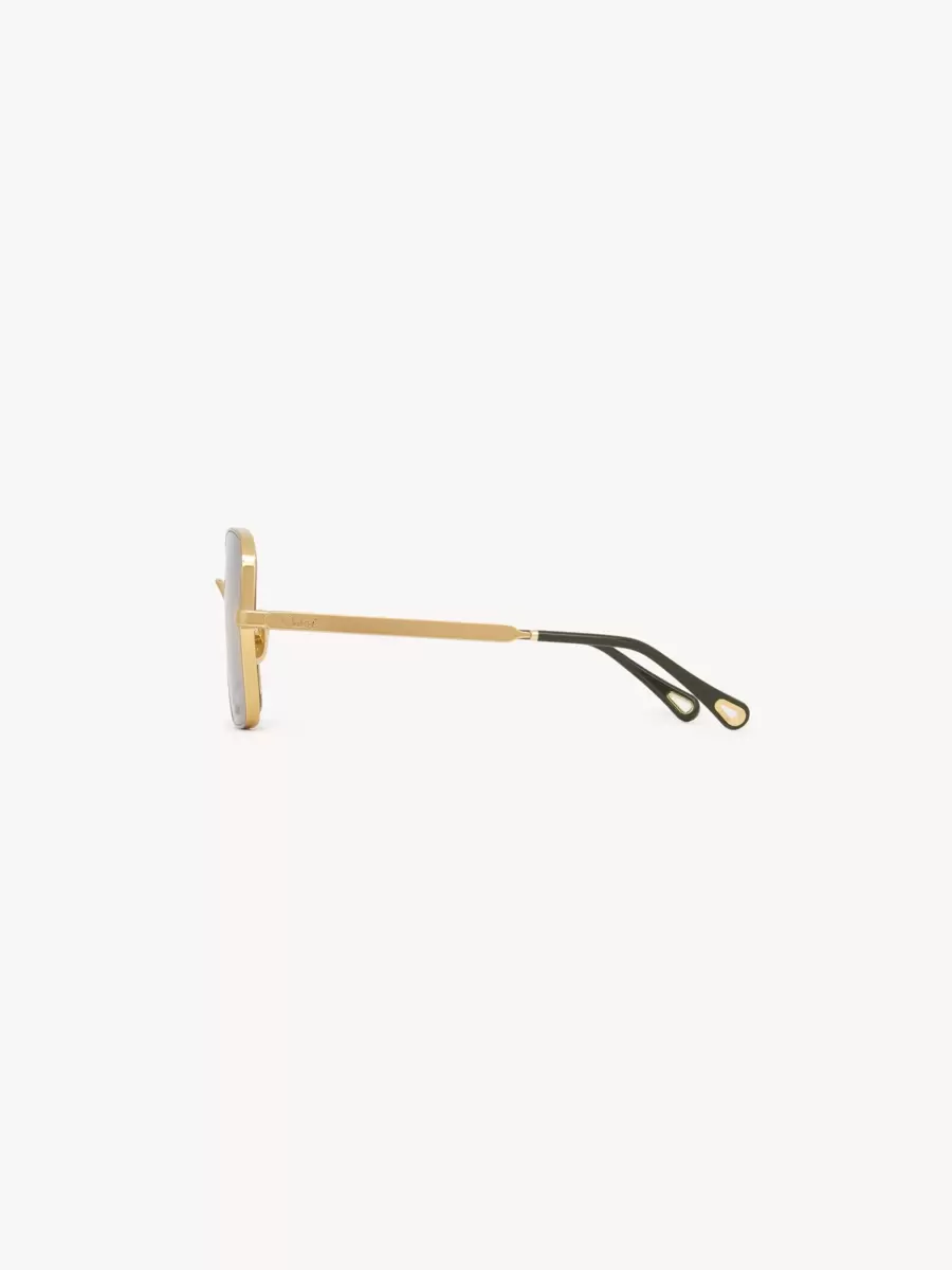 Fyrkantiga solglasögon i guldfärgad metall och biobaserad nylon