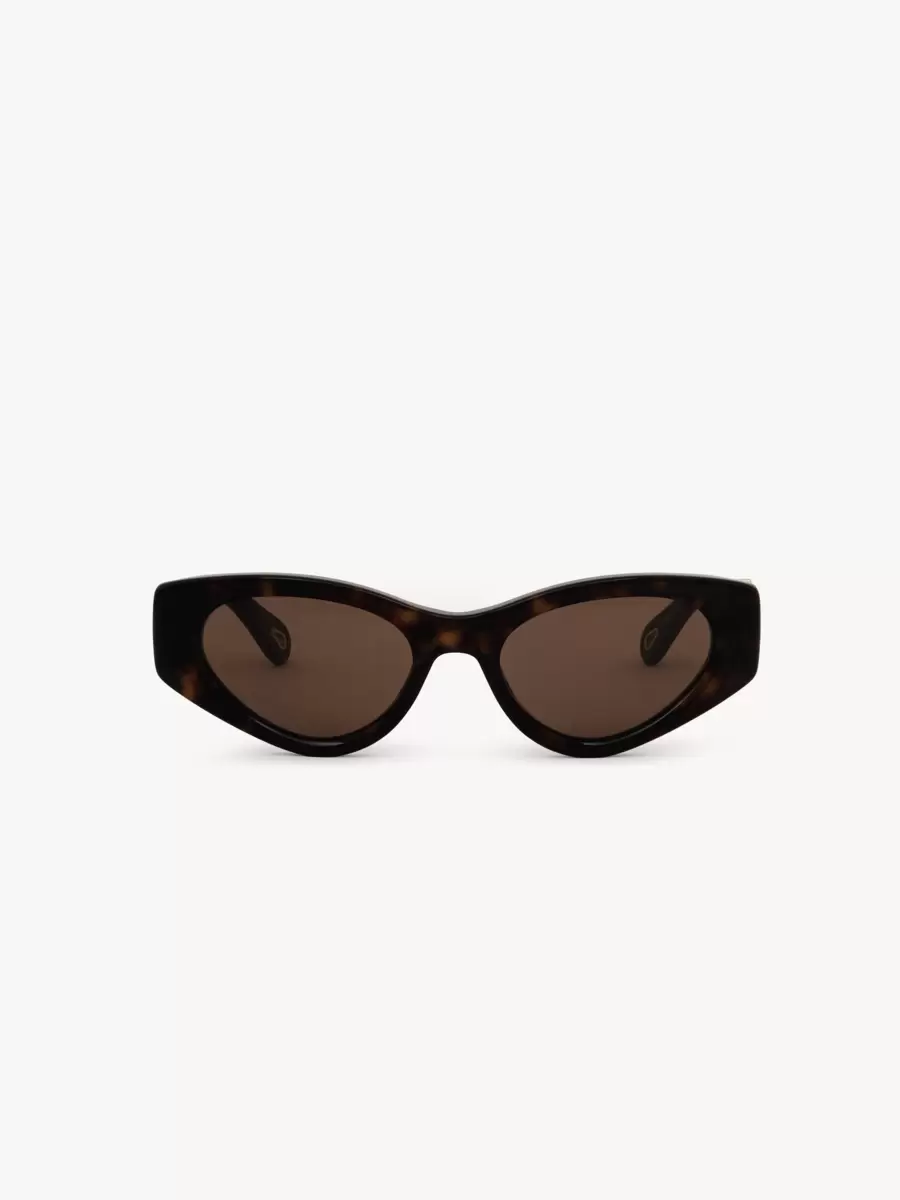 Marcie cat eye-solglasögon med rejäla, avfasade bågar med Marcies signatur guldfärgade metalldel vid gångjärnen.