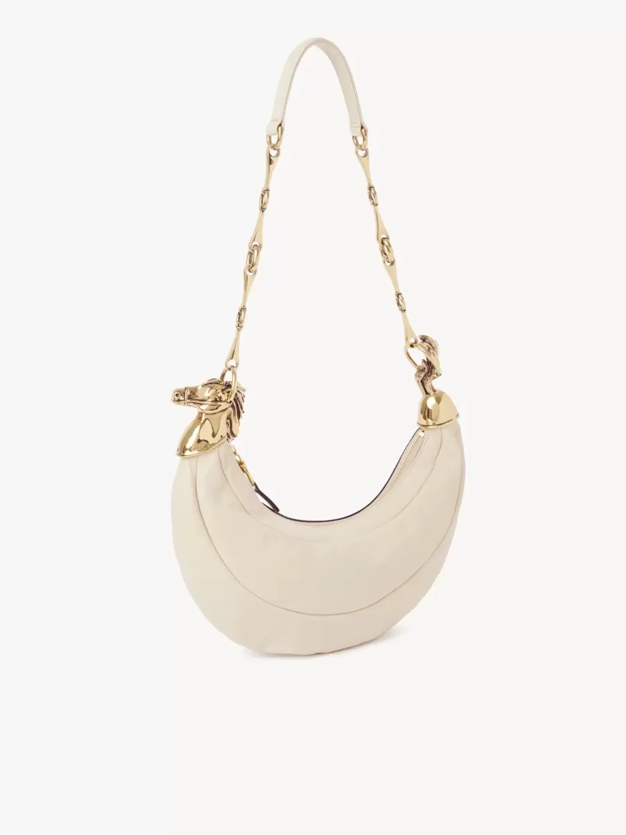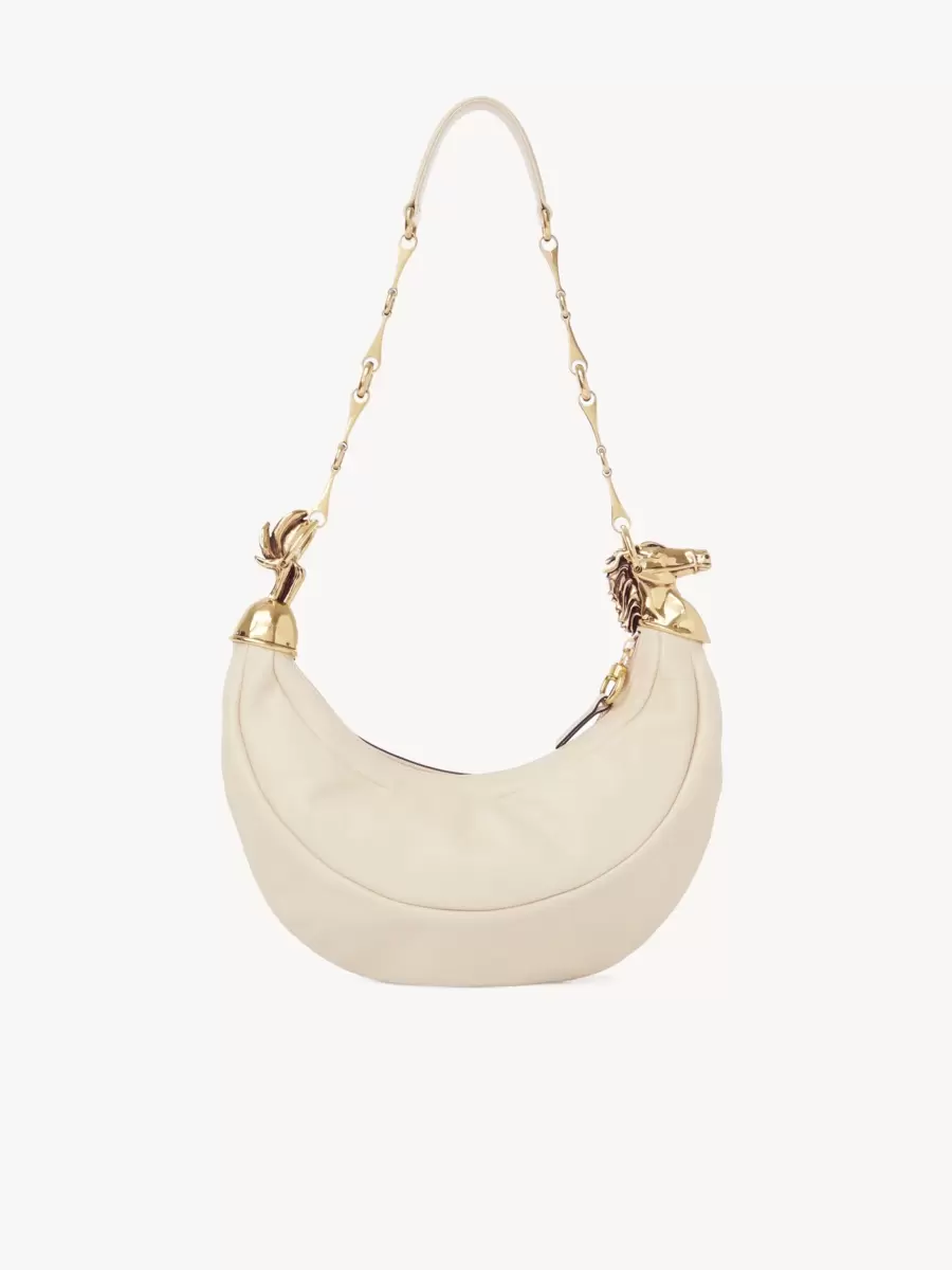 Denna Chain Horse-axelväska är tillverkad av glänsande kalvskinn och har en smidig sadelsilhuett. Inspirerad av ridvärlden har den smyckesutsmyckning med en guldfärgad häst och en hästbettkedja.