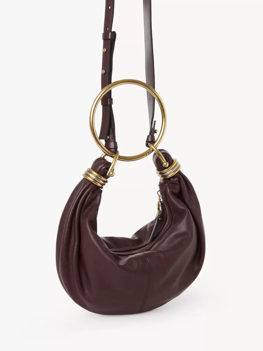 Inspirerad av Maisons arkiv är denna lilla Bracelet Hobo-väska tillverkad av narvat buffelläder. Den smidiga, rundade formen förstärks av ett armbandshandtag och staplade tvåfärgade ringar i ändarna.