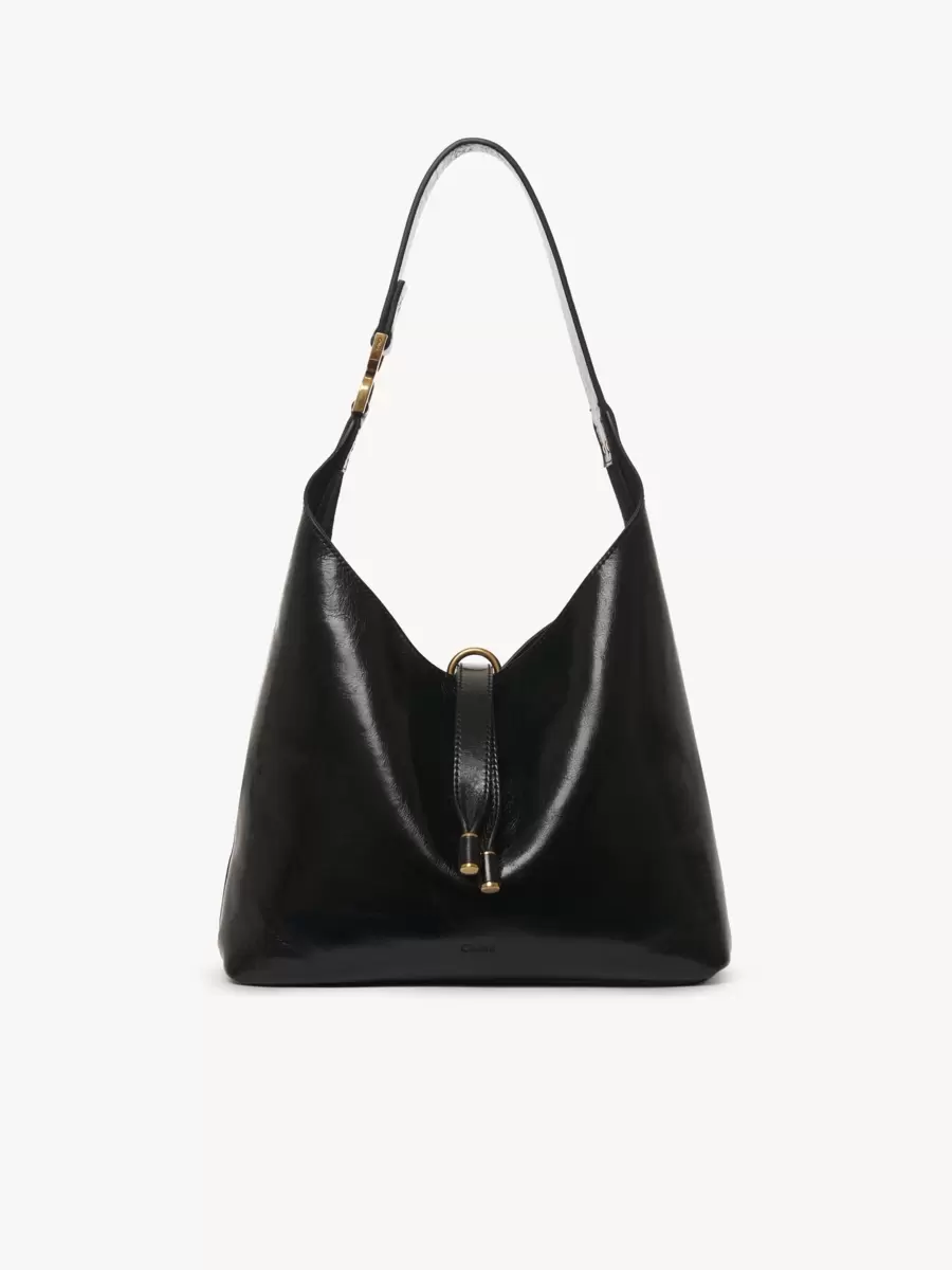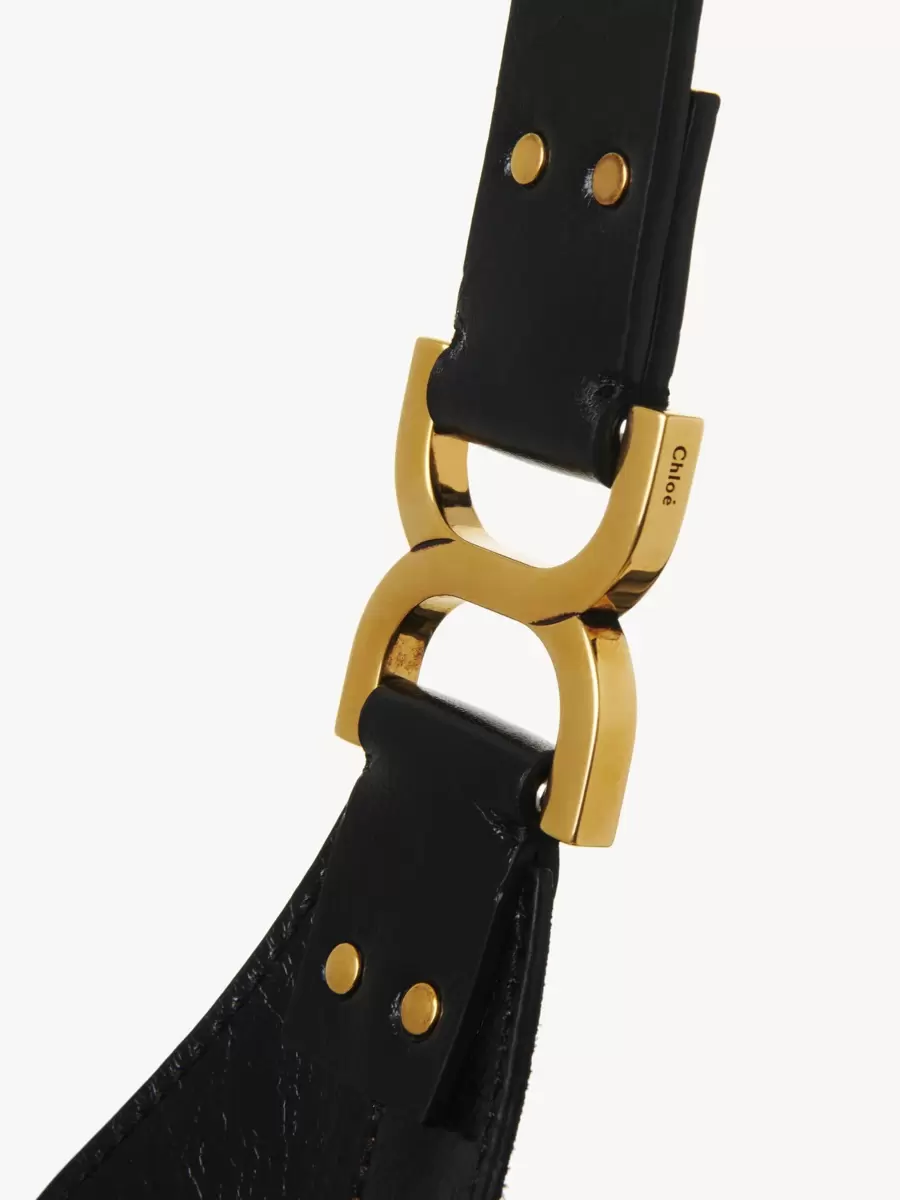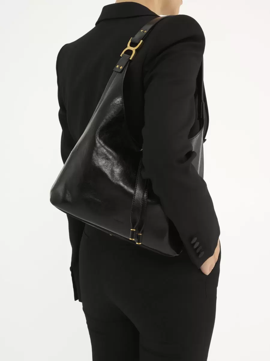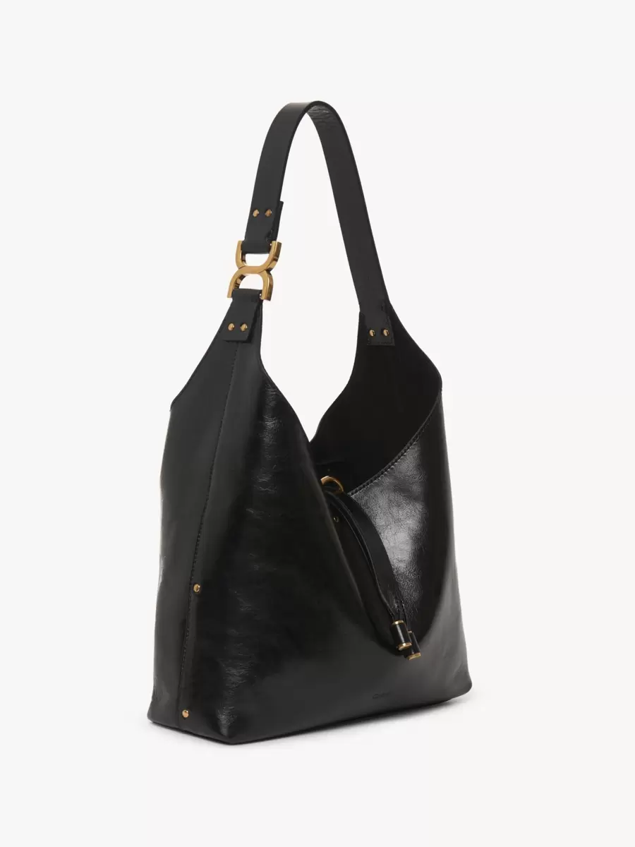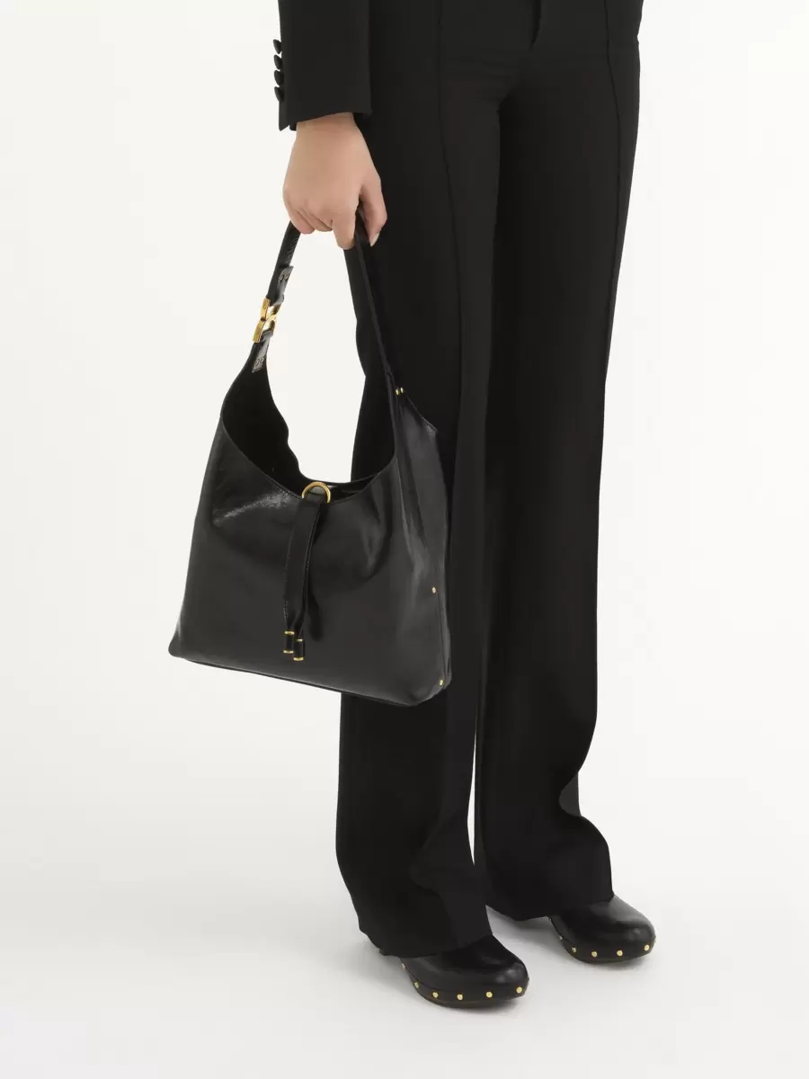 Denna lilla hoboväska från Marcie har en lös, minimalistisk silhuett. Tillverkad av glänsande kalvskinn med ett kontrasterande nithandtag utsmyckat med seriens ikoniska guldfärgade metallicdetalj. Signaturlädertofsar skyddar dess mockainredning.