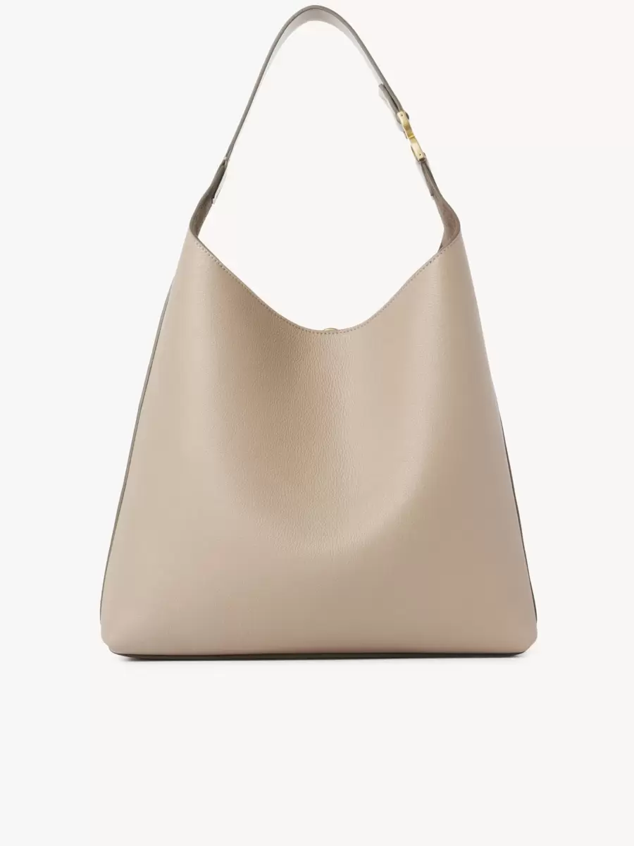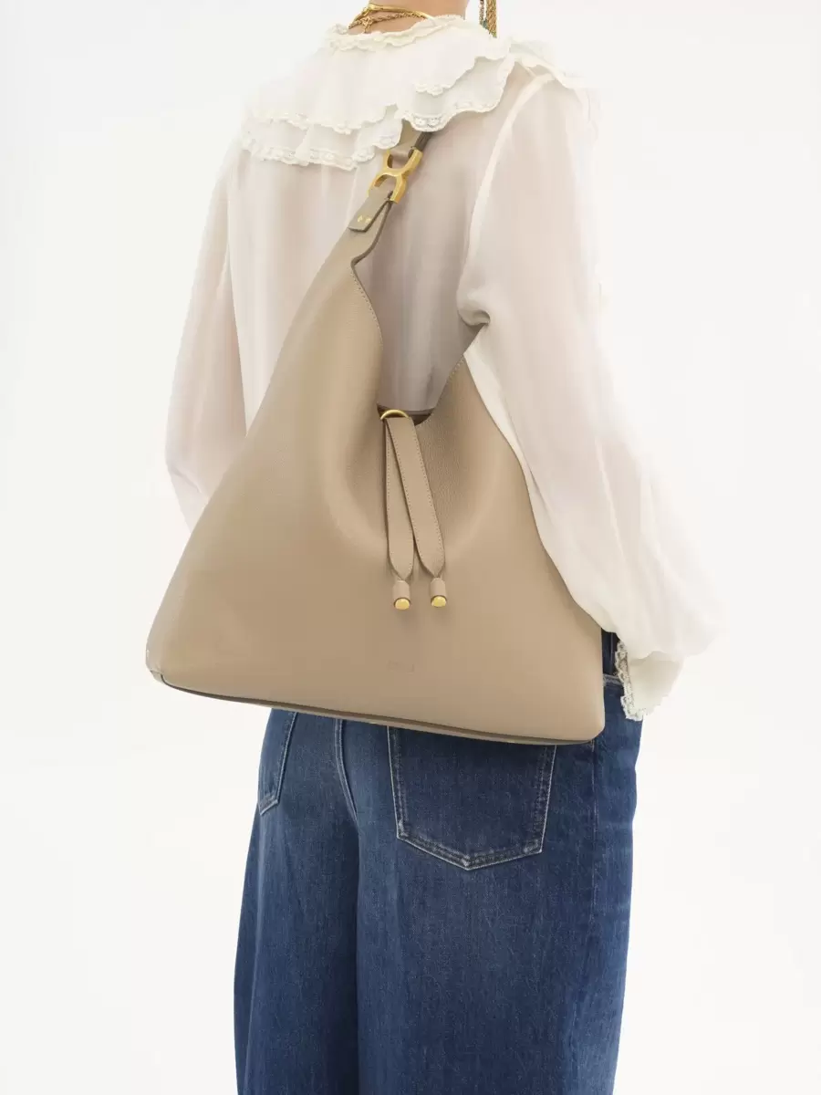 Denna Marcie hobo-väska har en lös, minimalistisk silhuett. Tillverkad av narvat kalvskinn, har den ett kontrasterande nithandtag utsmyckat med seriens ikoniska guldfärgade metallicdetalj. Signaturlädertofsar skyddar dess mockainredning.