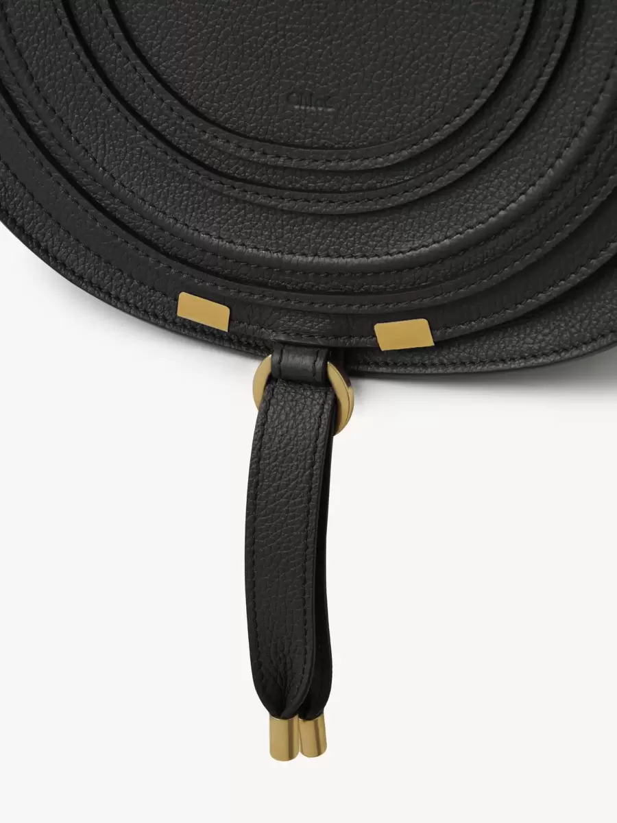 Denna Marcie-sadelväska är tillverkad av narvat kalvskinn med en rundad silhuett och en ren topplinje. Fliken har seriens ikoniska sadelsömmar, säkrade med signatur dinglande lädertofsar.