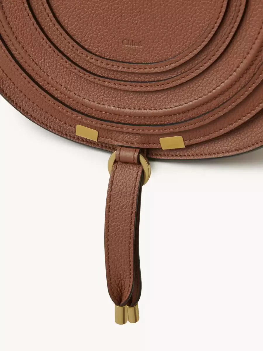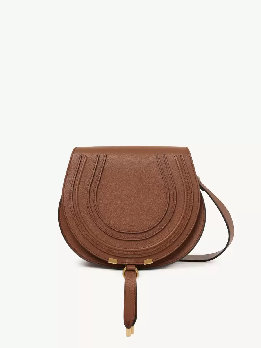 Denna Marcie-sadelväska är tillverkad av narvat kalvskinn med en rundad silhuett och en ren topplinje. Fliken har seriens ikoniska sadelsömmar, säkrade med signatur dinglande lädertofsar.
