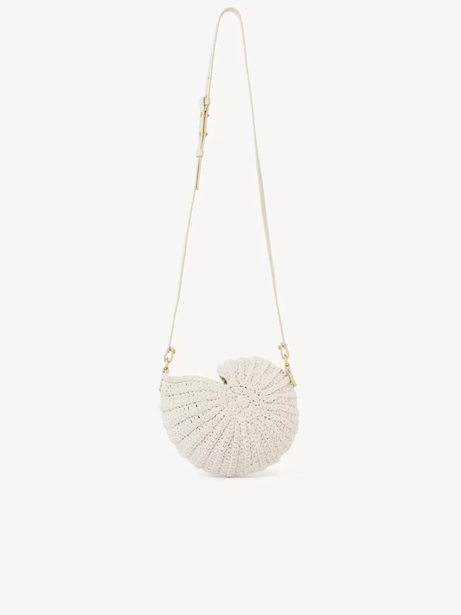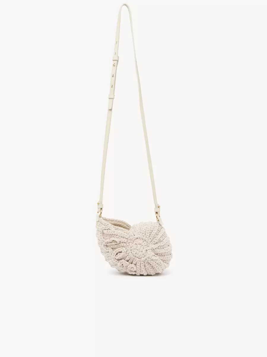 Sea Treasures crossbody-väska återskapar en snäcksform i virkad form. Framsidan har en handskriven signatur i olika toner inspirerad av Chloé-arvet.