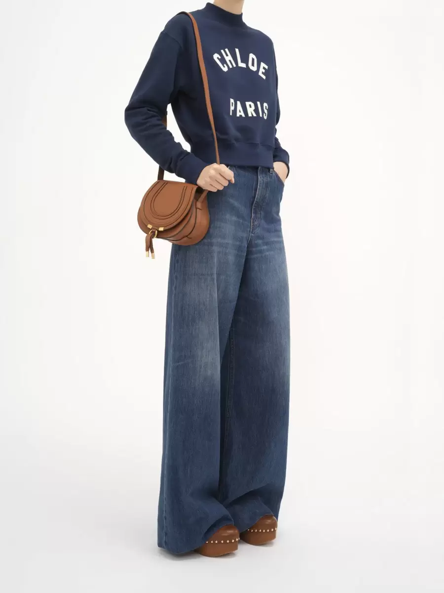 Denna lilla sadelväska från Marcie är tillverkad av narvat kalvskinn. Den harmoniska blandningen av en ren topplinje och rund silhuett är typisk för Maisons lek med maskulina och feminina toner. Marcies justerbara läderrem är perfekt för långa axlar och axelband.