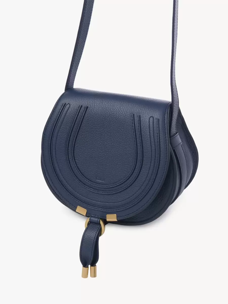 Denna lilla sadelväska från Marcie är tillverkad av narvat kalvskinn. Den harmoniska blandningen av en ren topplinje och rund silhuett är typisk för Maisons lek med maskulina och feminina toner. Marcies justerbara läderrem är perfekt för långa axlar och axelband.