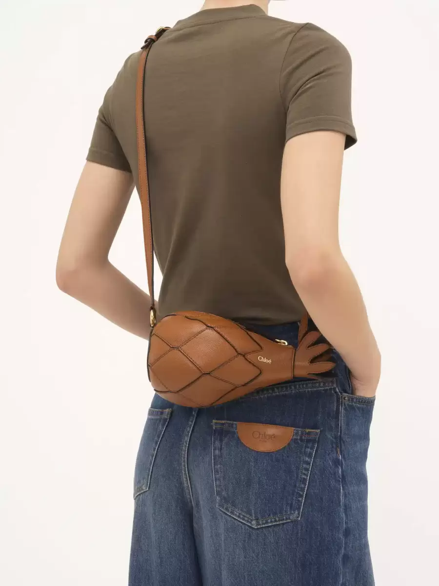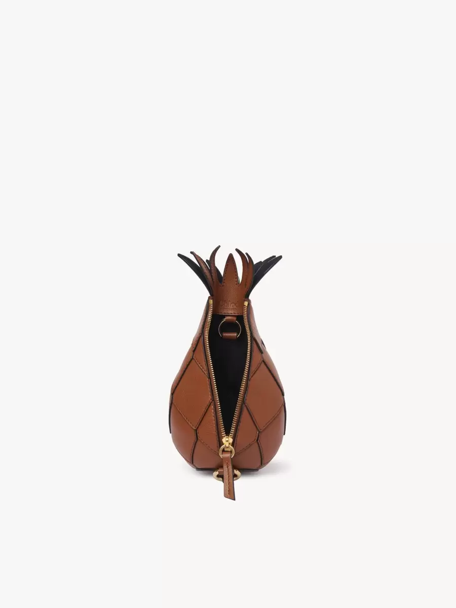 Denna mini-axelväska i Pineapple-stil är tillverkad av glänsande kalvskinn och inspirerad av Chloés vårkollektion 2001. Den distinkta formen visar upp Maisons hantverkskunnande, med ett toppsytt diamantmotiv och en krona.
