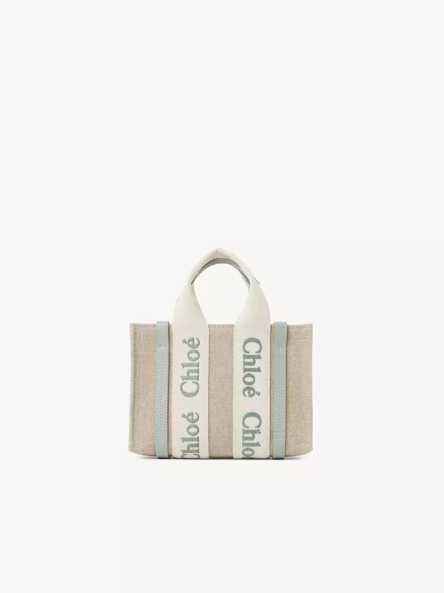 Mini-toteväska i broderat band, linnecanvas och glänsande kalvskinn med Chloé-logotyp.