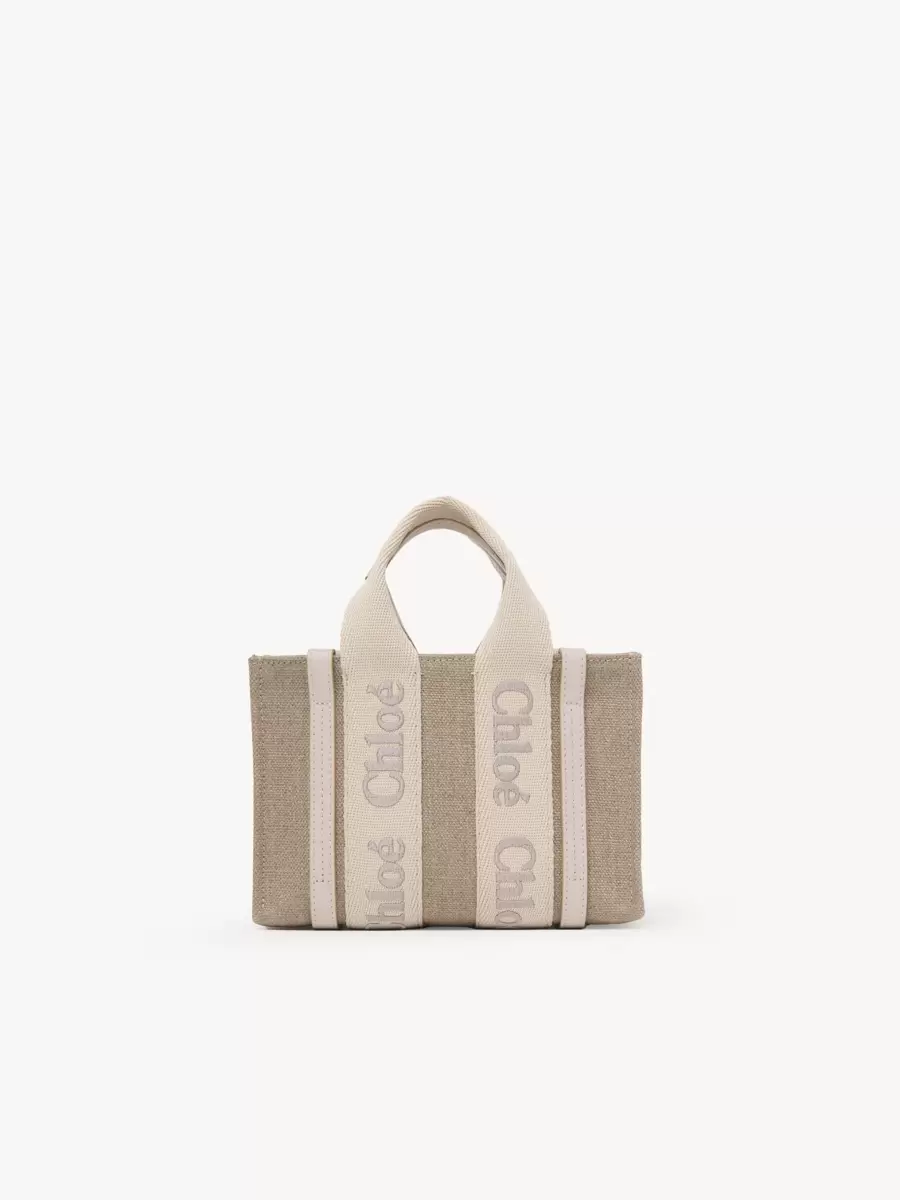 Mini-toteväska i linnecanvas och glänsande kalvskinn med Chloé-logotyp