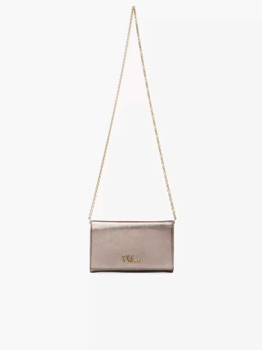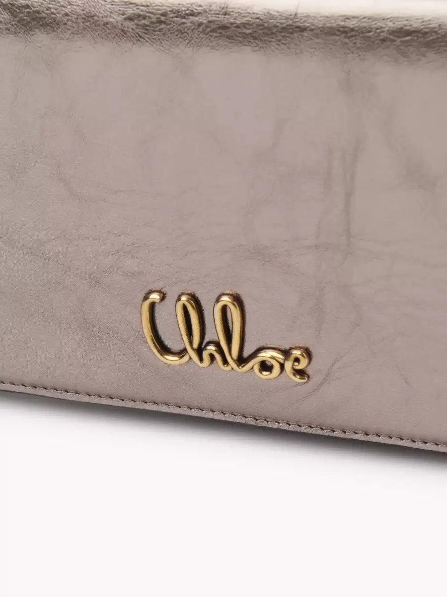 Chloé ikonisk plånbok med lock och kedja i metalliserat läder
